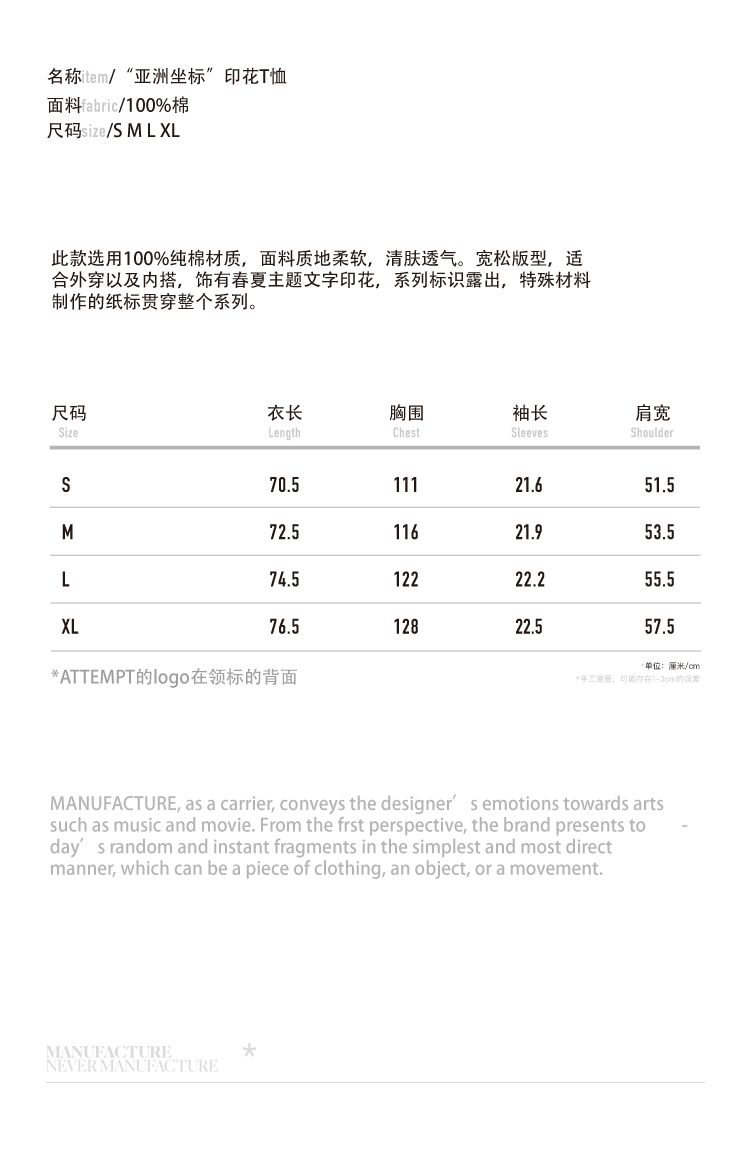 MANUFACTURE BY ATTEMPT 亚洲坐标 T-shirt 短袖T恤