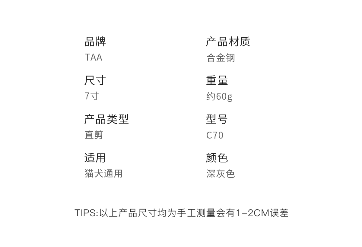 TAA它它宠物美容7寸精修直剪C-70宠物门店剪刀
