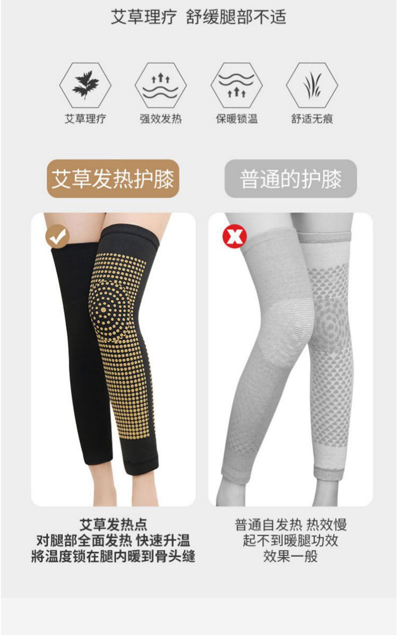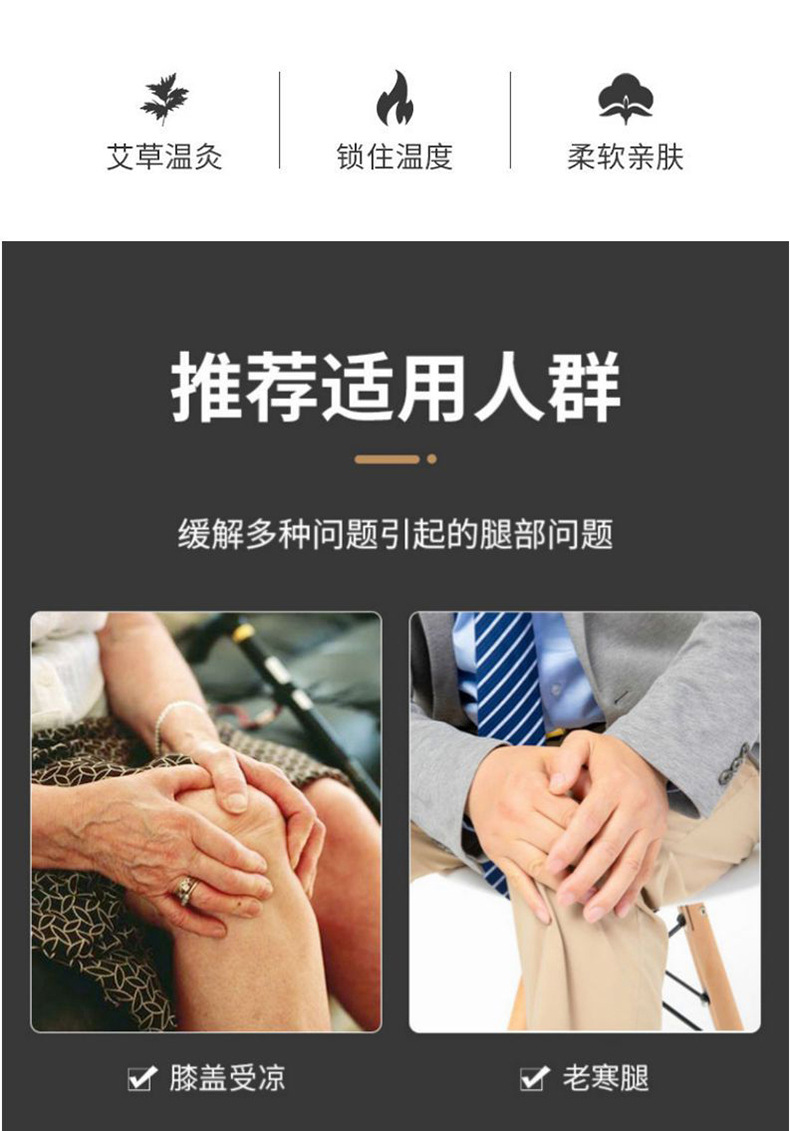 【暖心守护 不再寒冷!】艾草护膝盖保暖,穿上它,防风又保暖,即使秋冬再冷也不怕。可加速血液循环,减轻关节疼痛。防滑加压设计,紧贴双腿,感受舒适肌肤贴合;45℃持续发热,运动护航老年人的防寒利器!