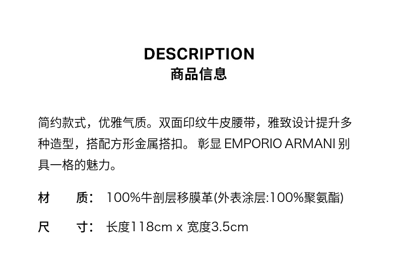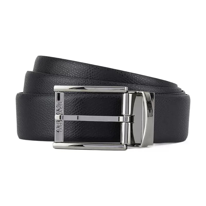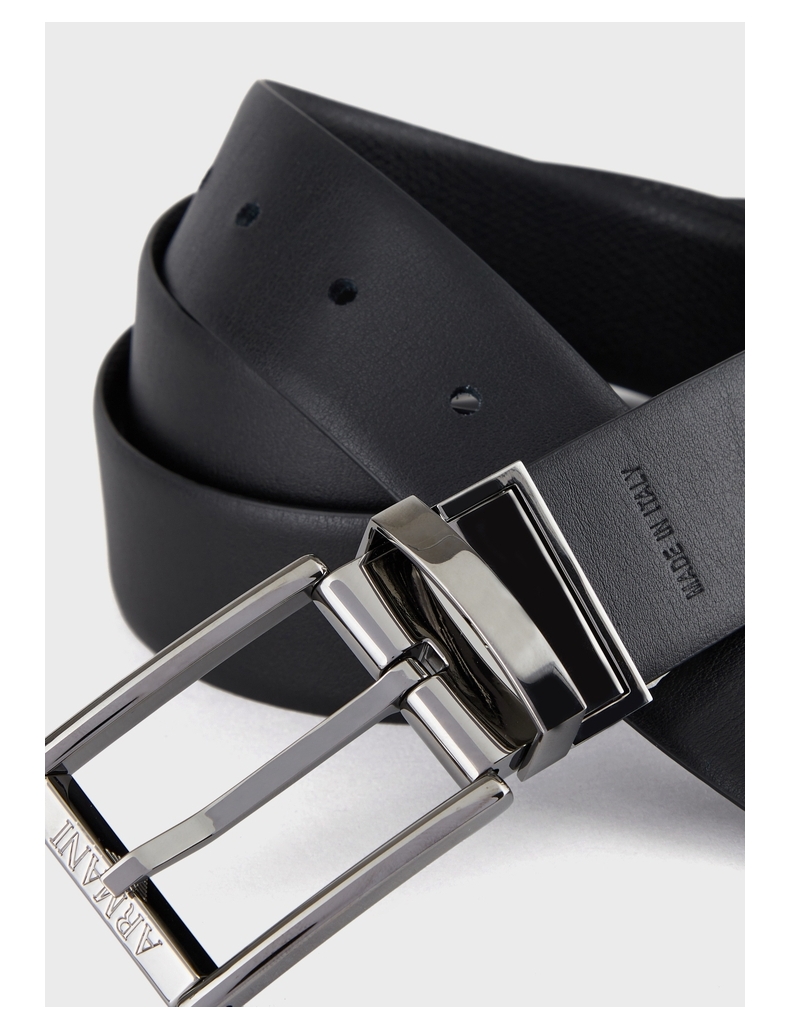 E ARMANI 正反两用简约针扣腰带男 Y4S071YKL1J-88001 黑色/黑色.100%BOVINE LEATHER - TRANSFER COATING SPLIT LEATHER