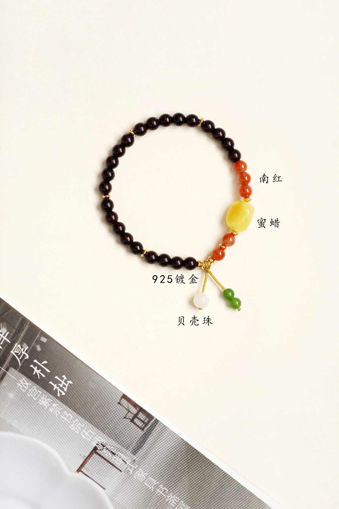 配件:蜜蜡、南红、925镀金、贝壳珠