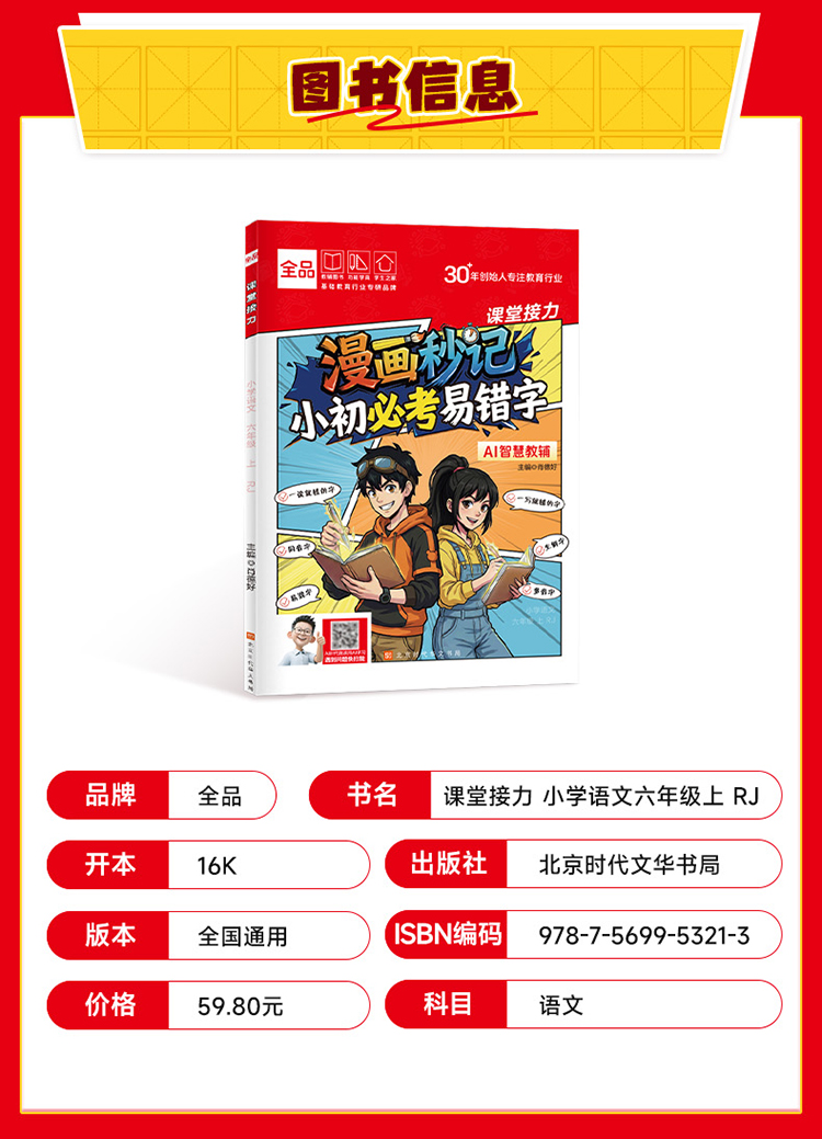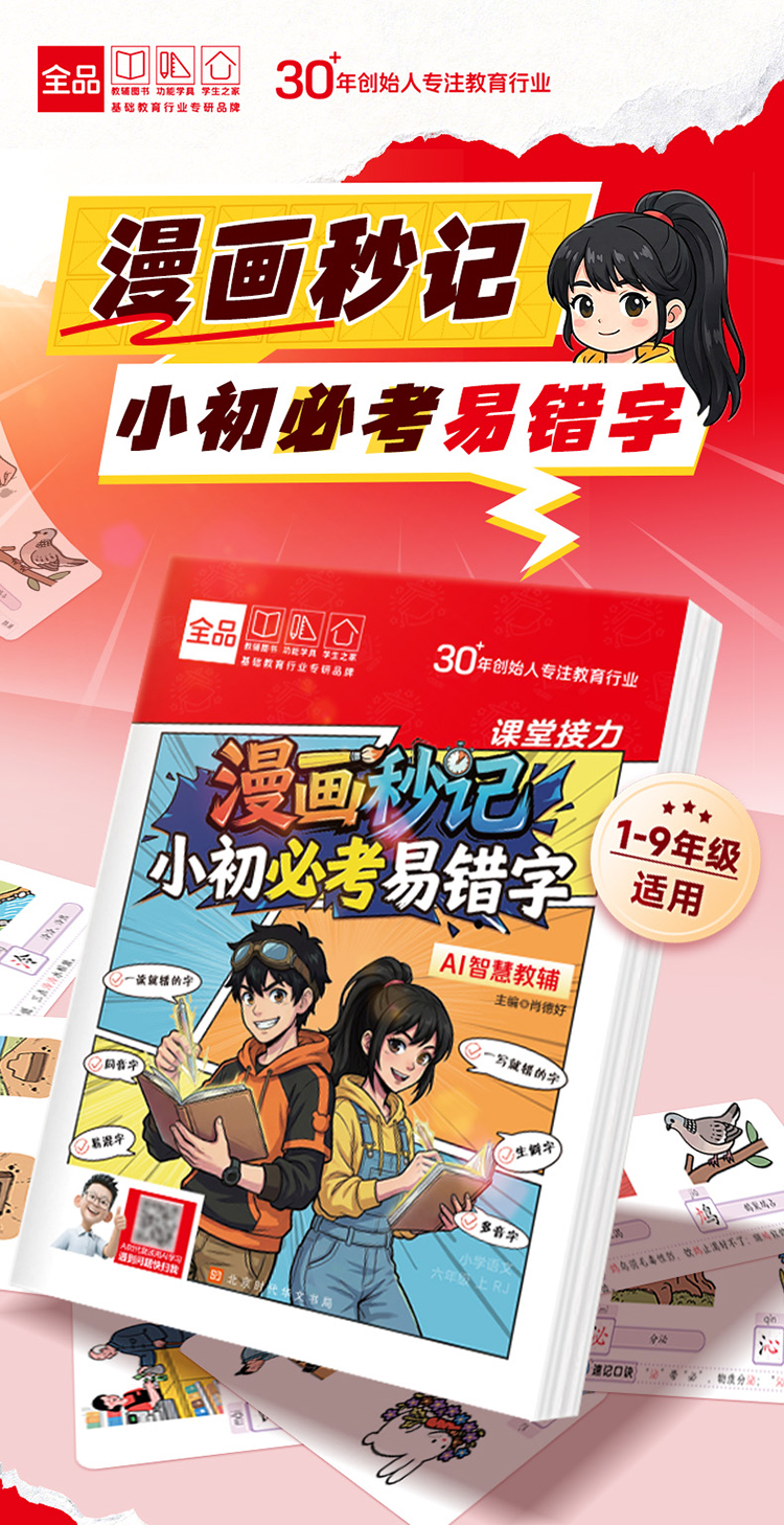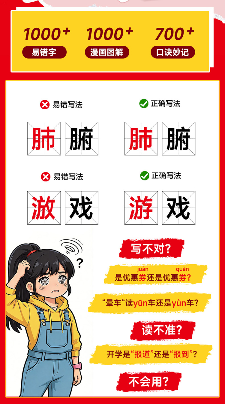 《漫画秒记小初必考易错字》全一册 9-15岁 1000+必考易错字 1000+漫画图解 700+口诀妙计 告别死记硬背 轻松攻克易错字