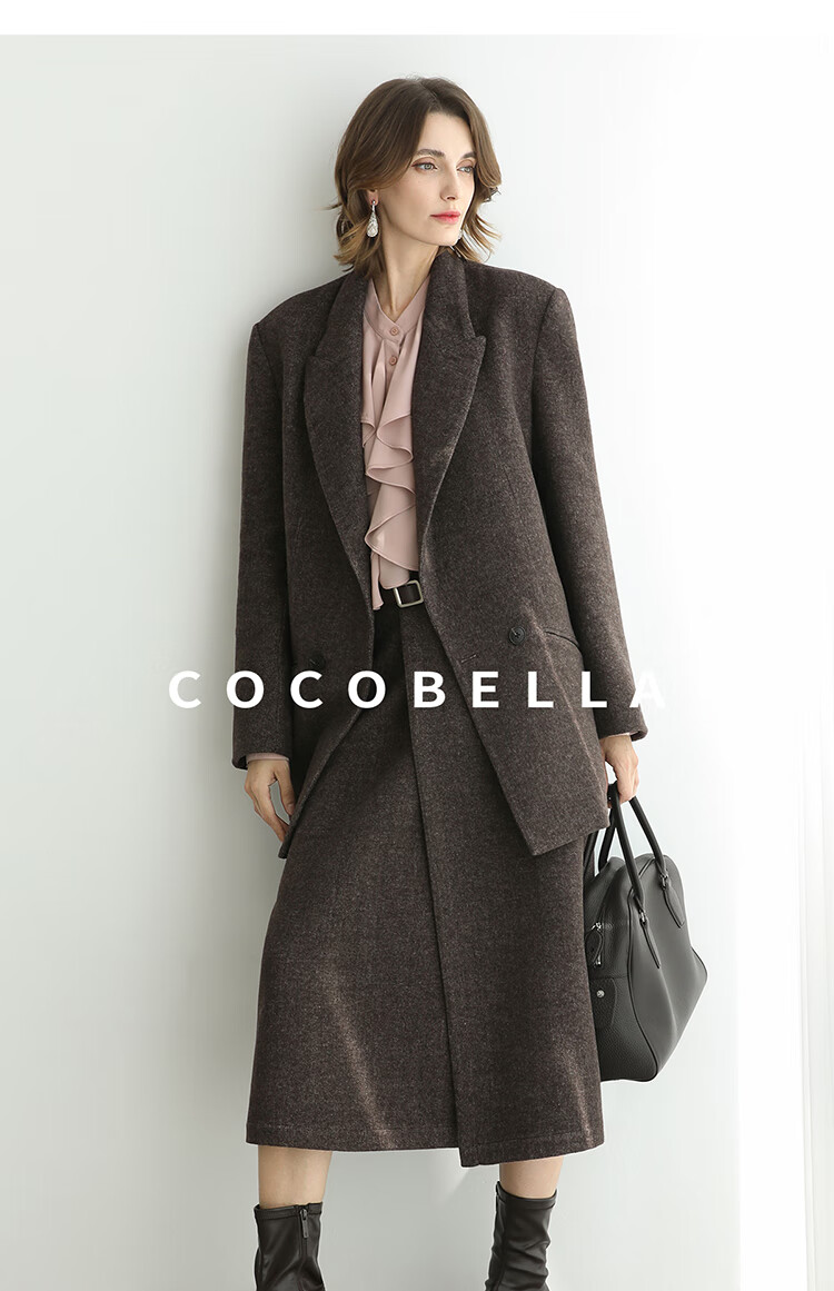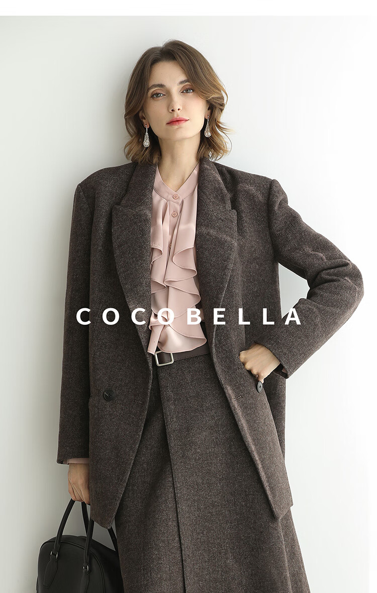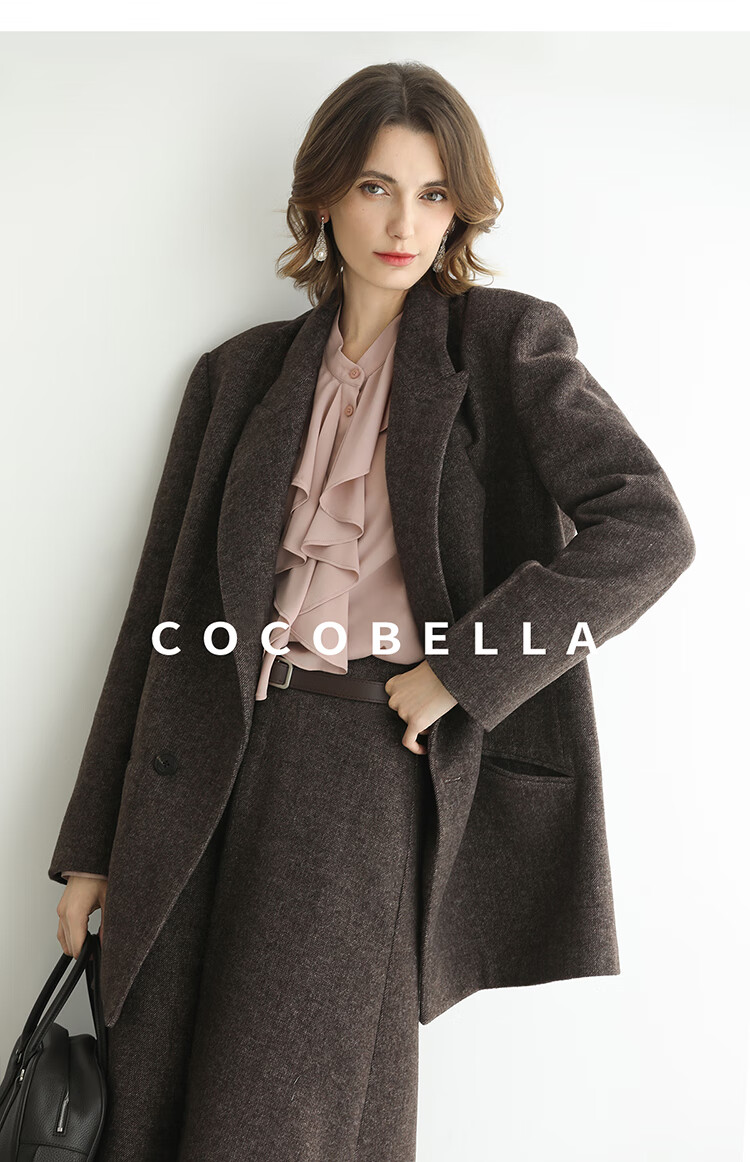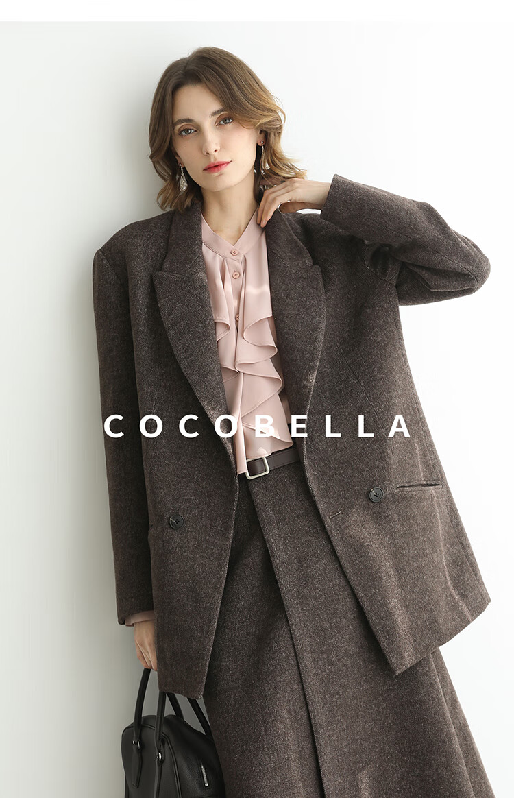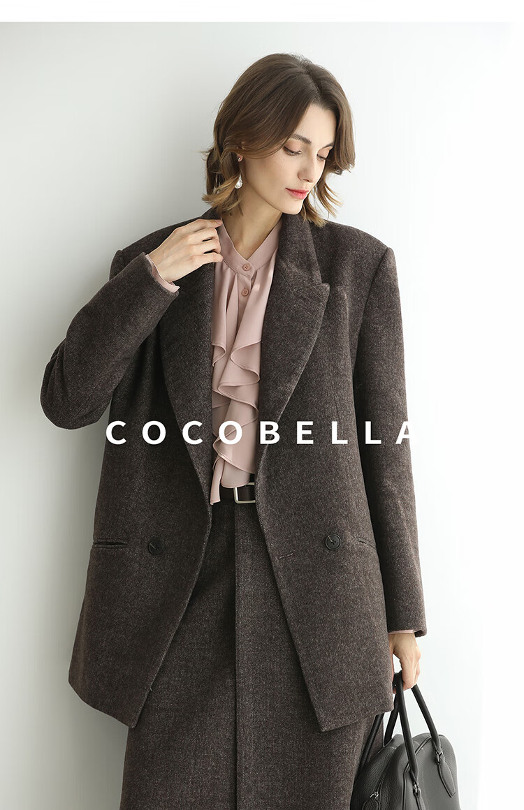 COCOBELLA高智感羊毛西装女秋冬新款廓形通勤毛呢外套SI3222