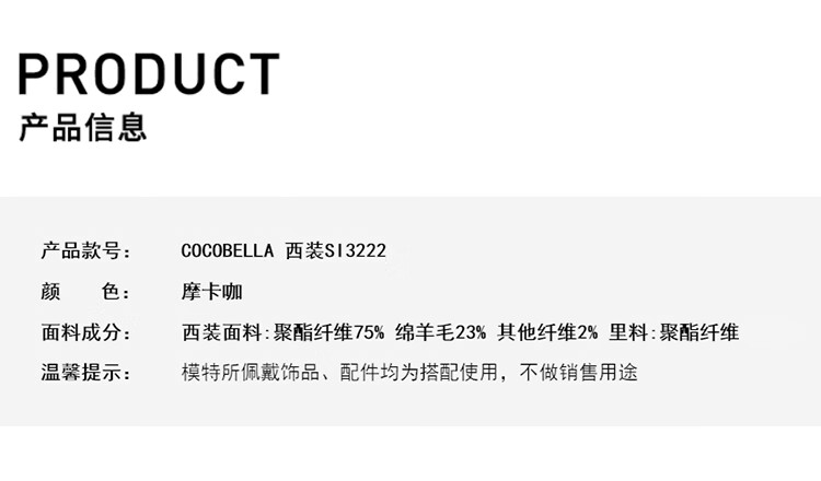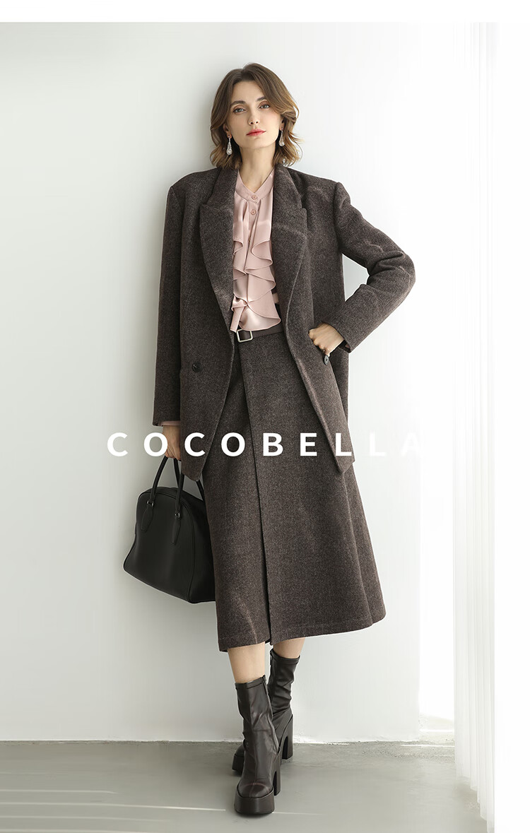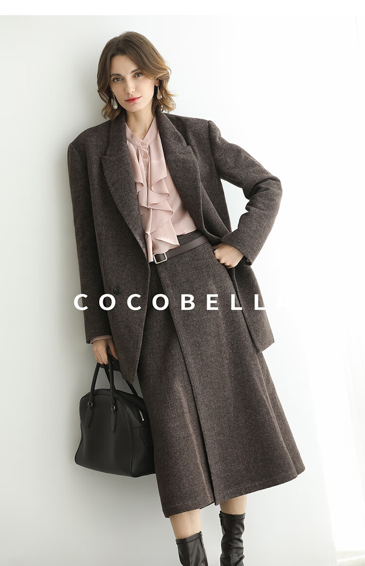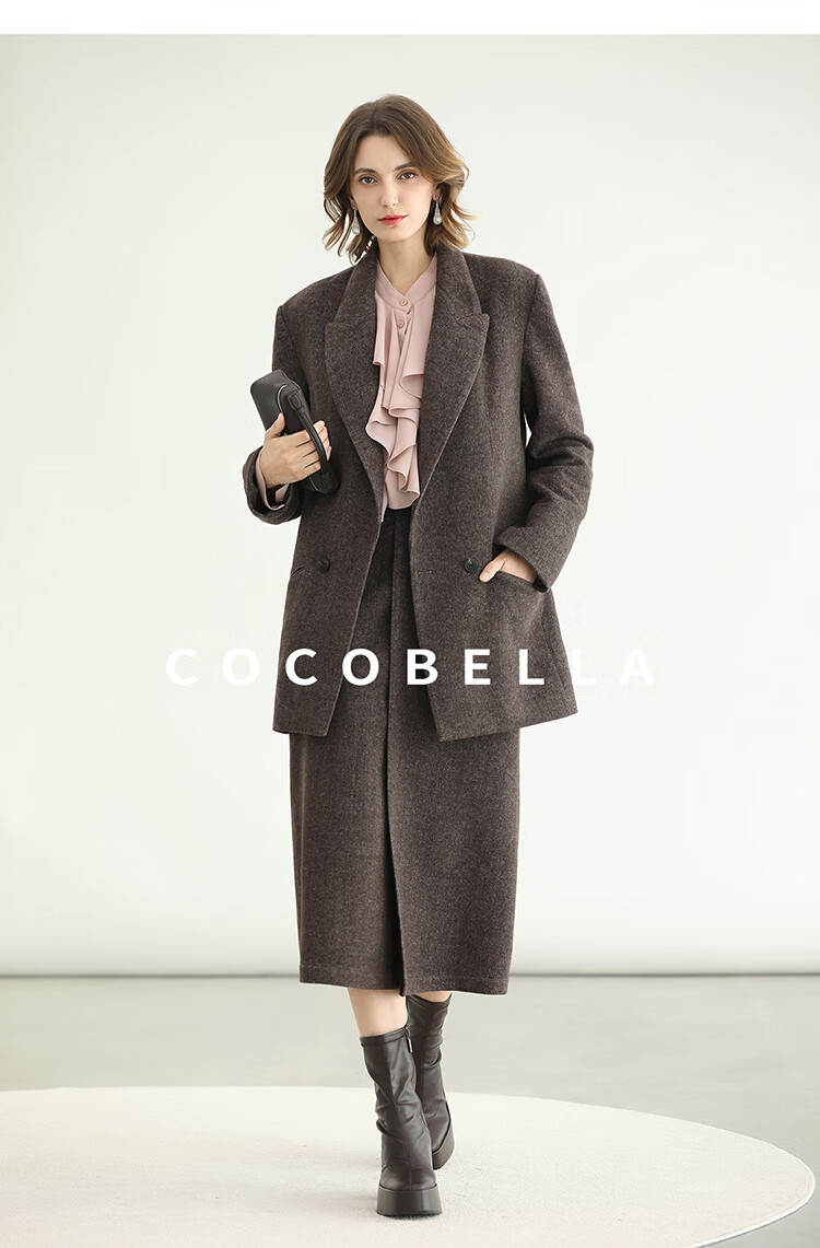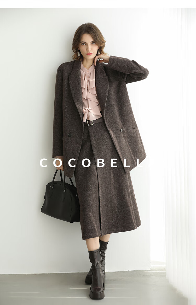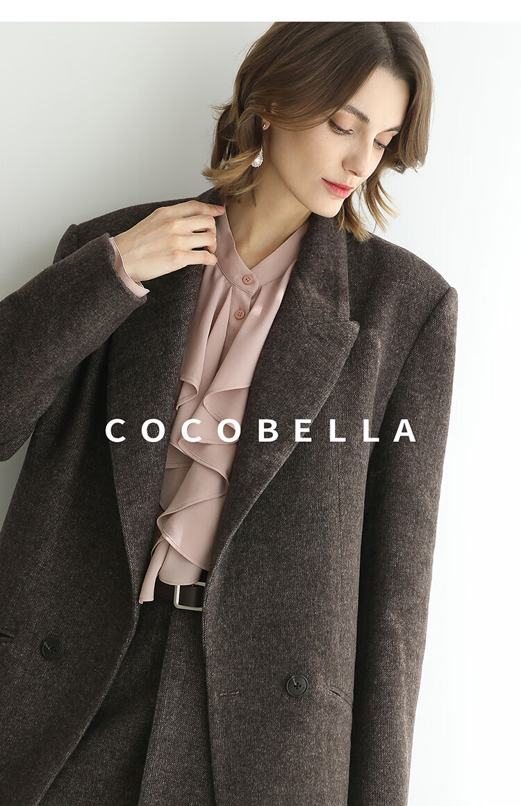 COCOBELLA高智感羊毛西装女秋冬新款廓形通勤毛呢外套SI3222