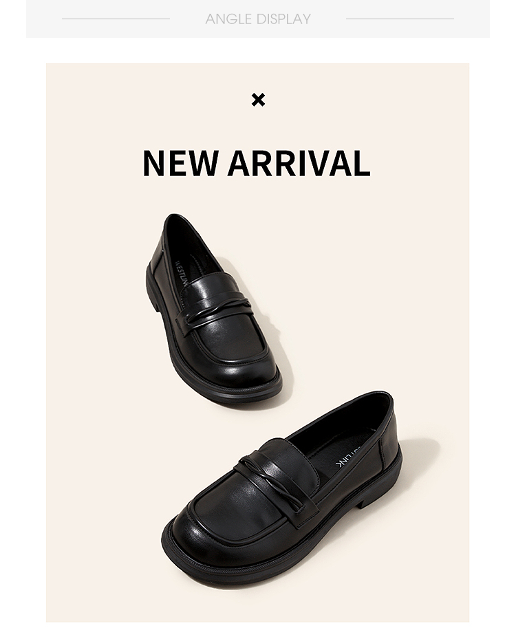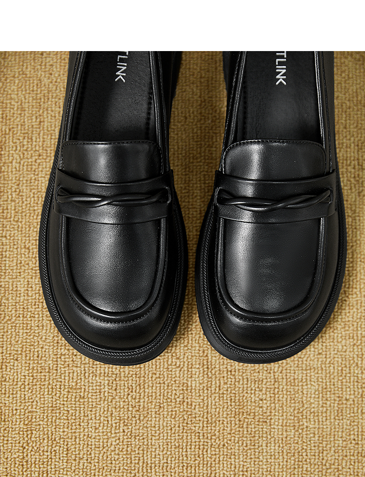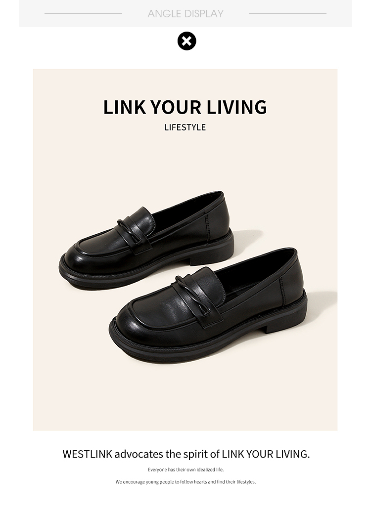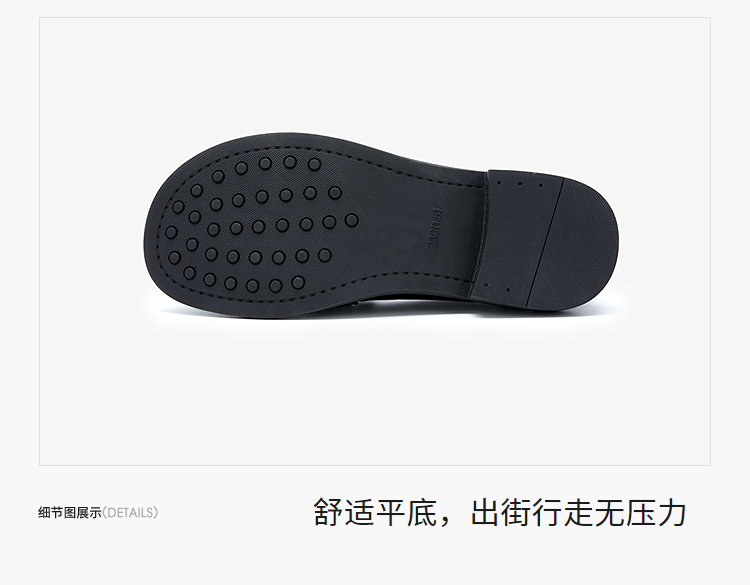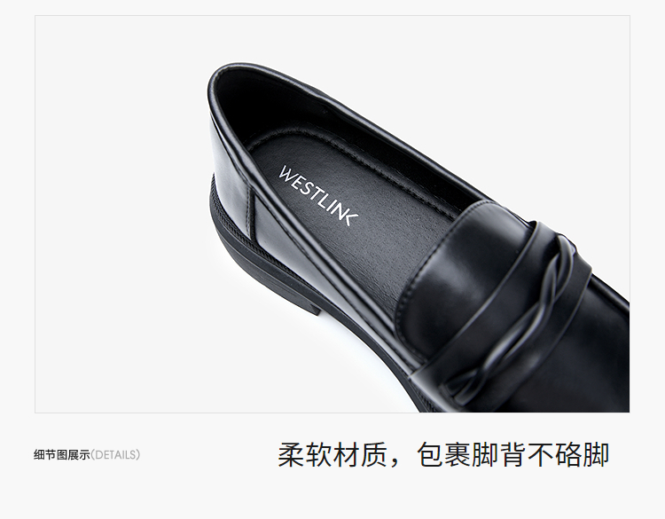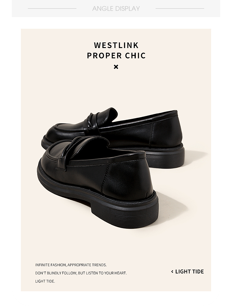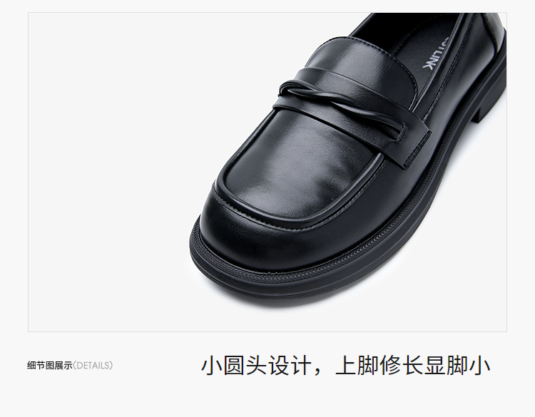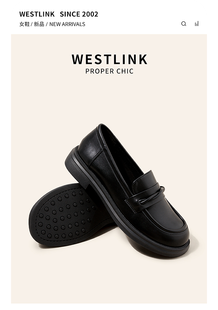 西遇平底乐福鞋女新款秋季法式简约一脚蹬低跟单鞋黑色小皮鞋V1857104
