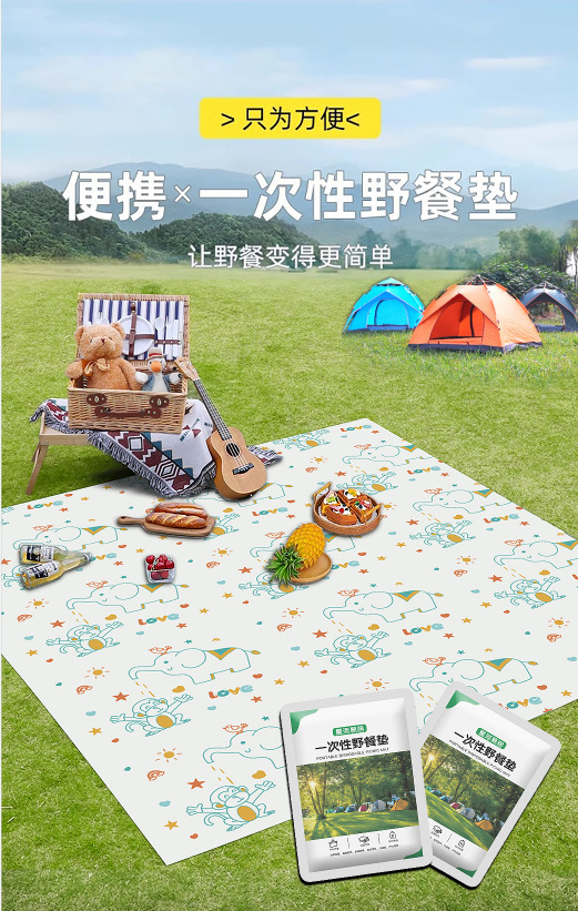 「一次性野餐垫!便携包装」双层印花露营垫 旅游户外烧烤旅行床单加厚防潮防湿野外露营户外装备