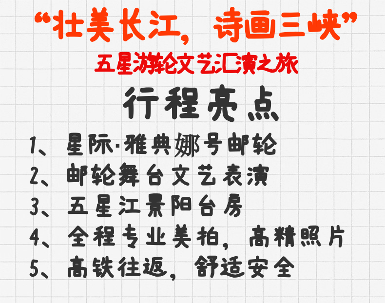 7月28日 “壮美长江、诗画三峡”五星豪华游轮星际雅典娜文艺汇演之旅
