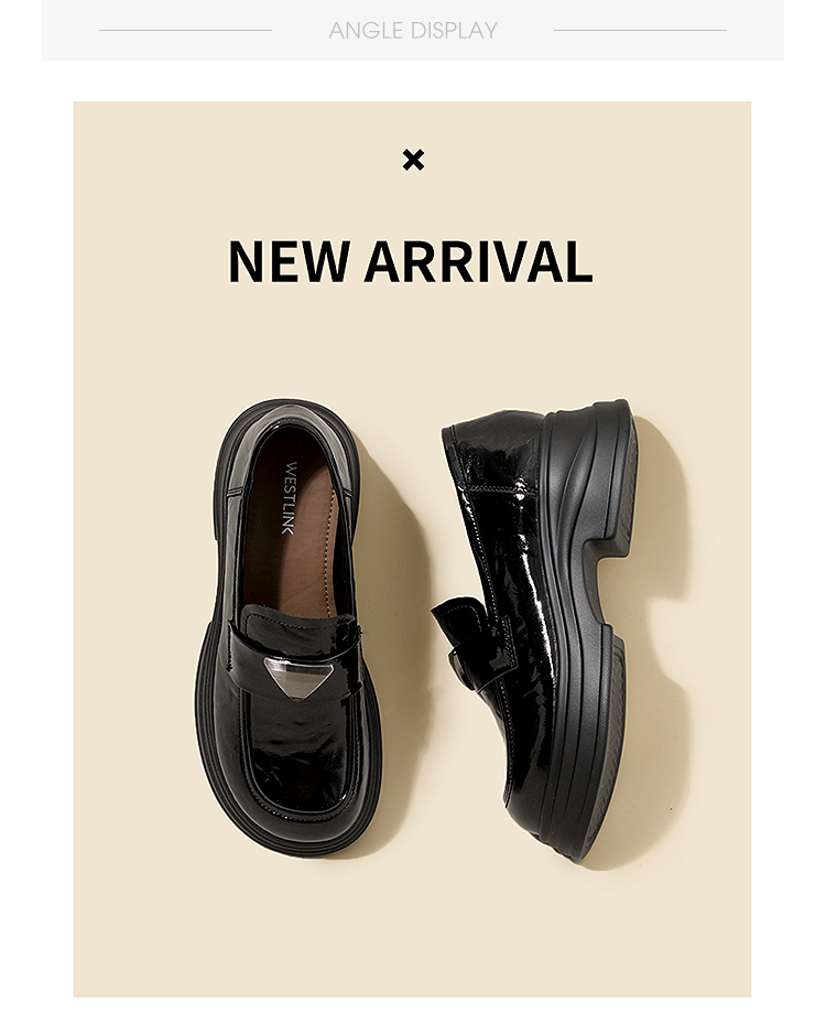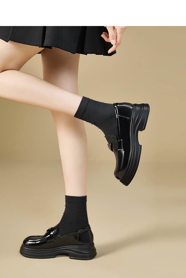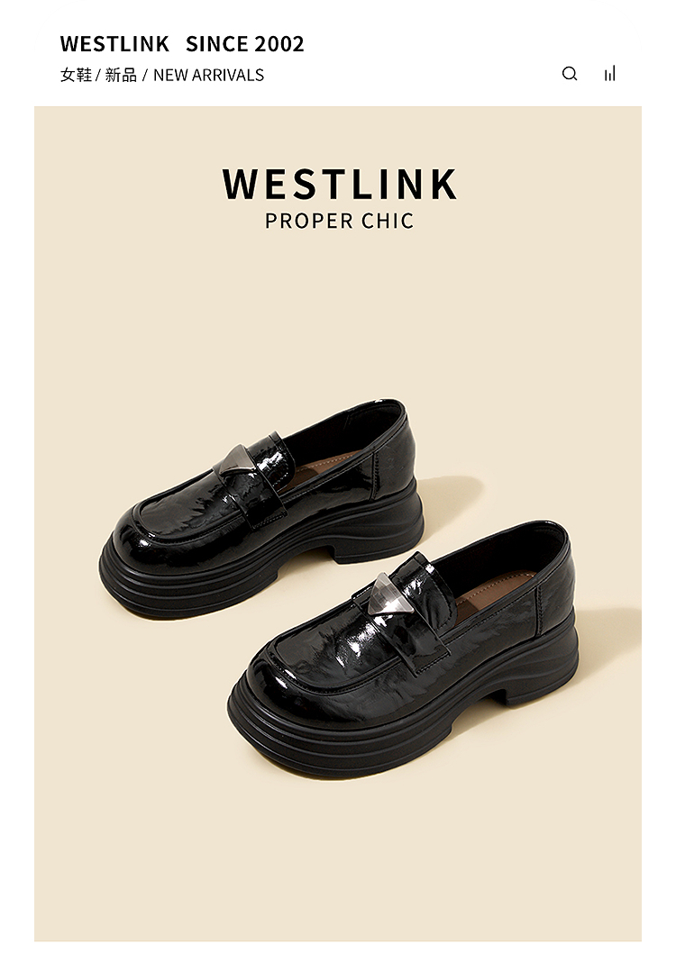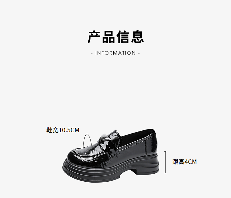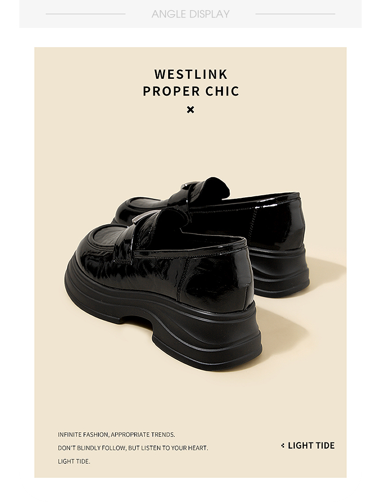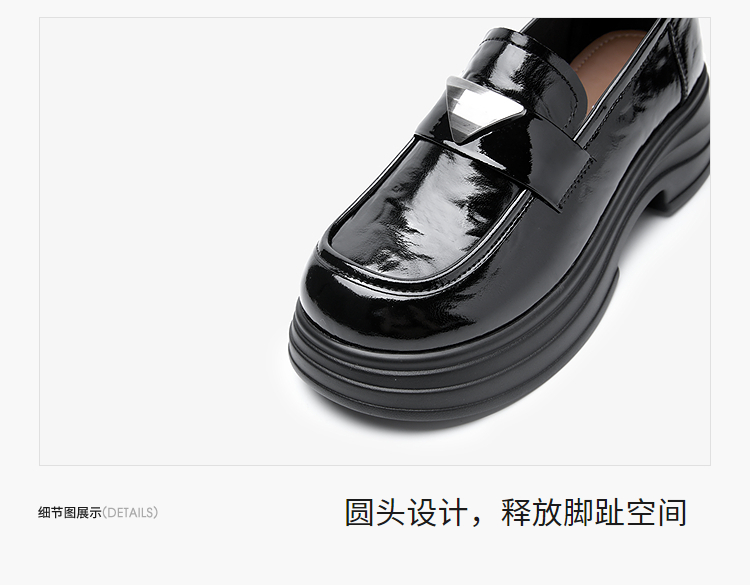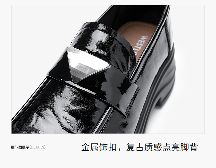 西遇厚底乐福鞋女新款秋季英伦漆皮增高黑色单鞋一脚蹬小皮鞋V1857095
