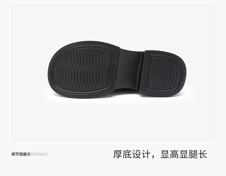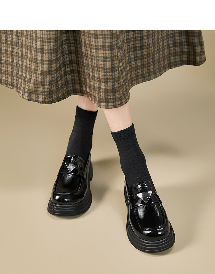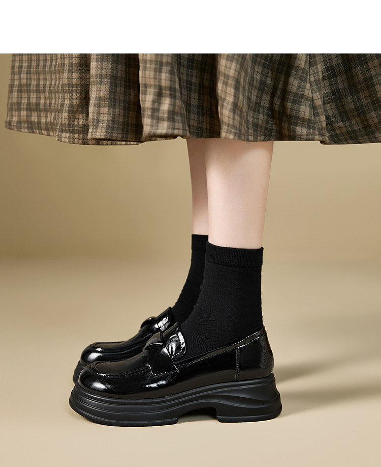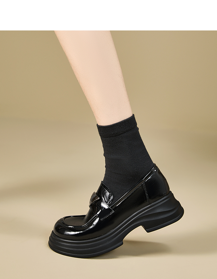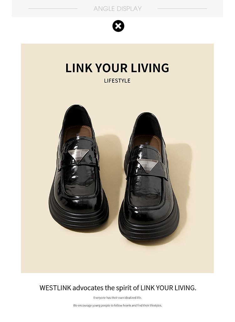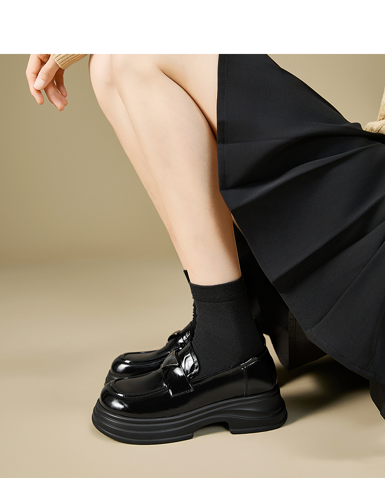 西遇厚底乐福鞋女新款秋季英伦漆皮增高黑色单鞋一脚蹬小皮鞋V1857095