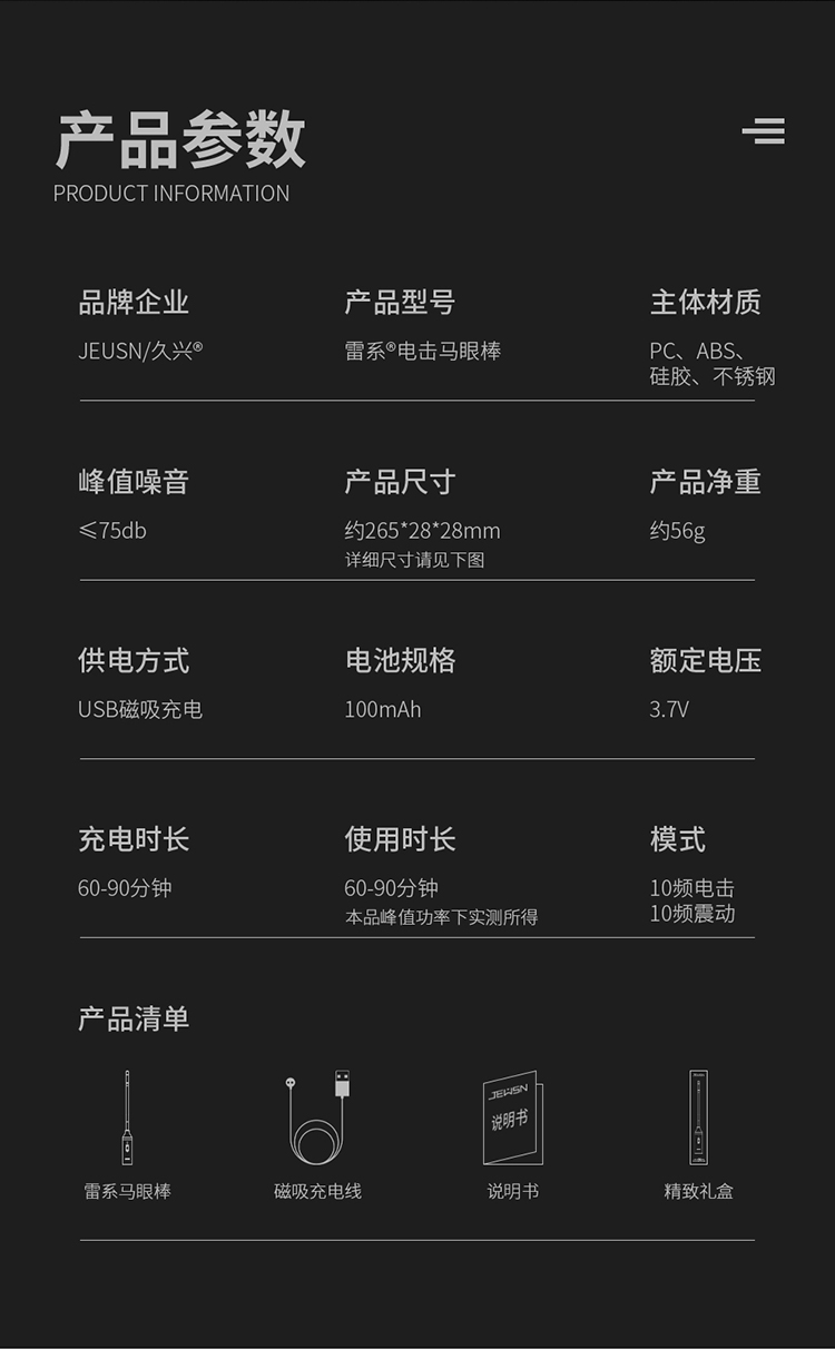 JEUSN 久兴雷眼Pro马眼棒 电击震动