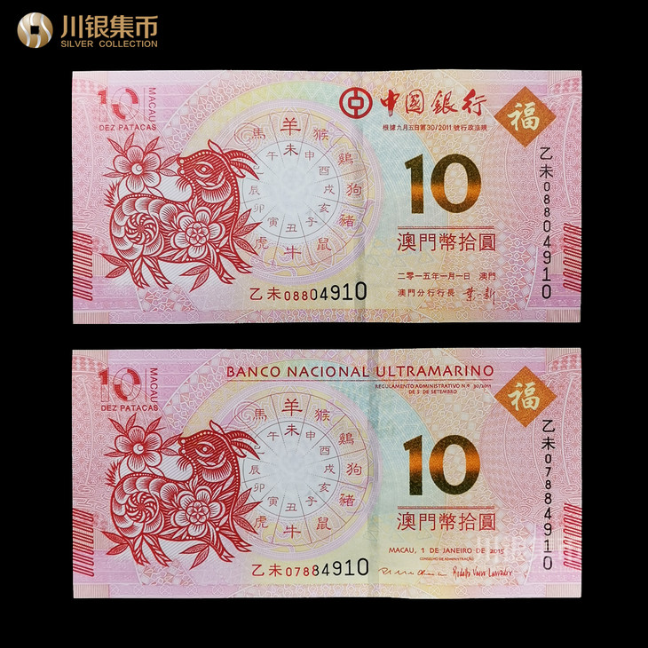 龙年,蛇年,马年,羊年对钞号码为尾三同,即两张生肖钞后三位号码数字一样。