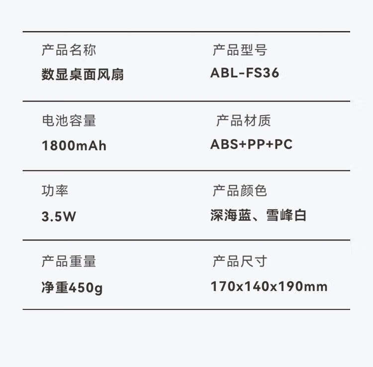 【小家电】Abereve艾贝丽数显桌面风扇ABL-FS36 HF