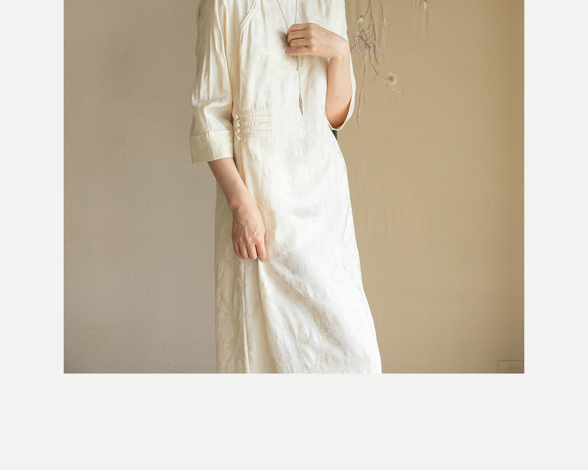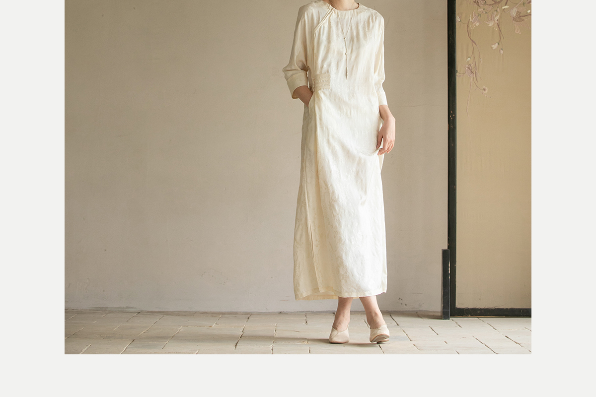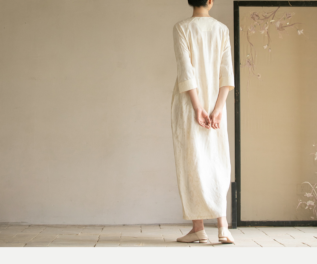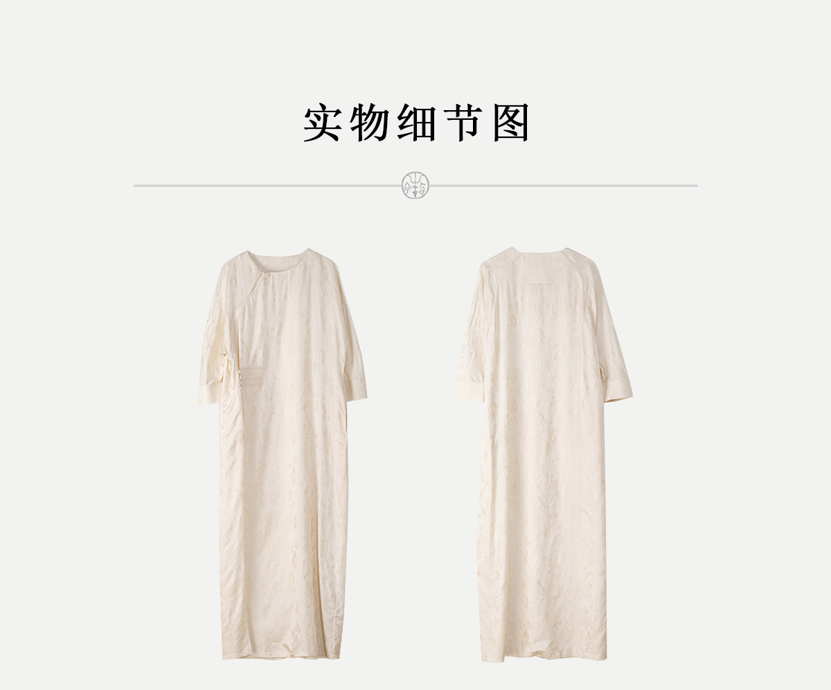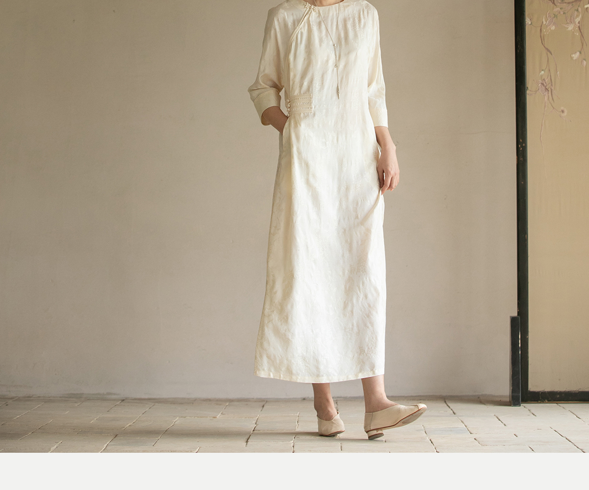 牧衣游原创 柞蚕丝混纺提花连衣裙女夏禅意古朴宽松气质长裙 溪外