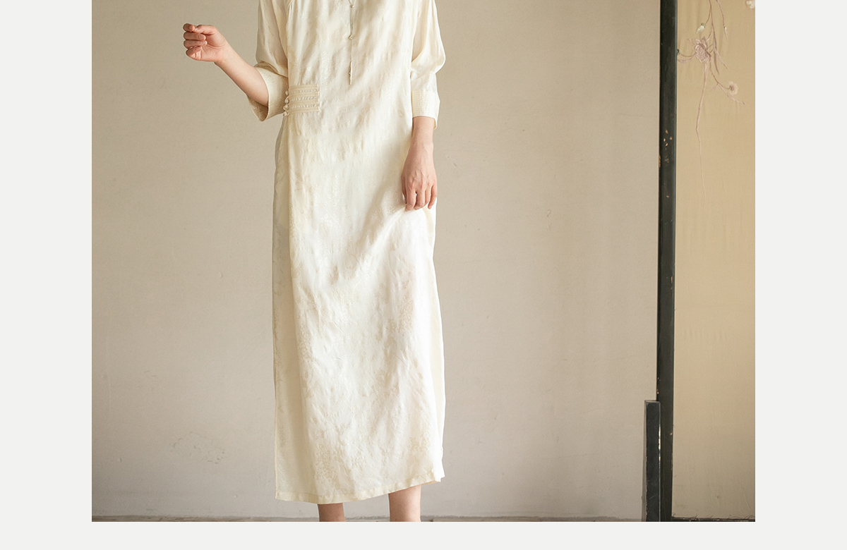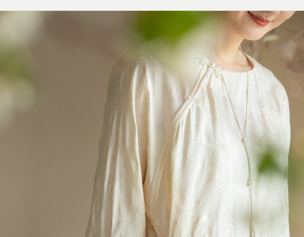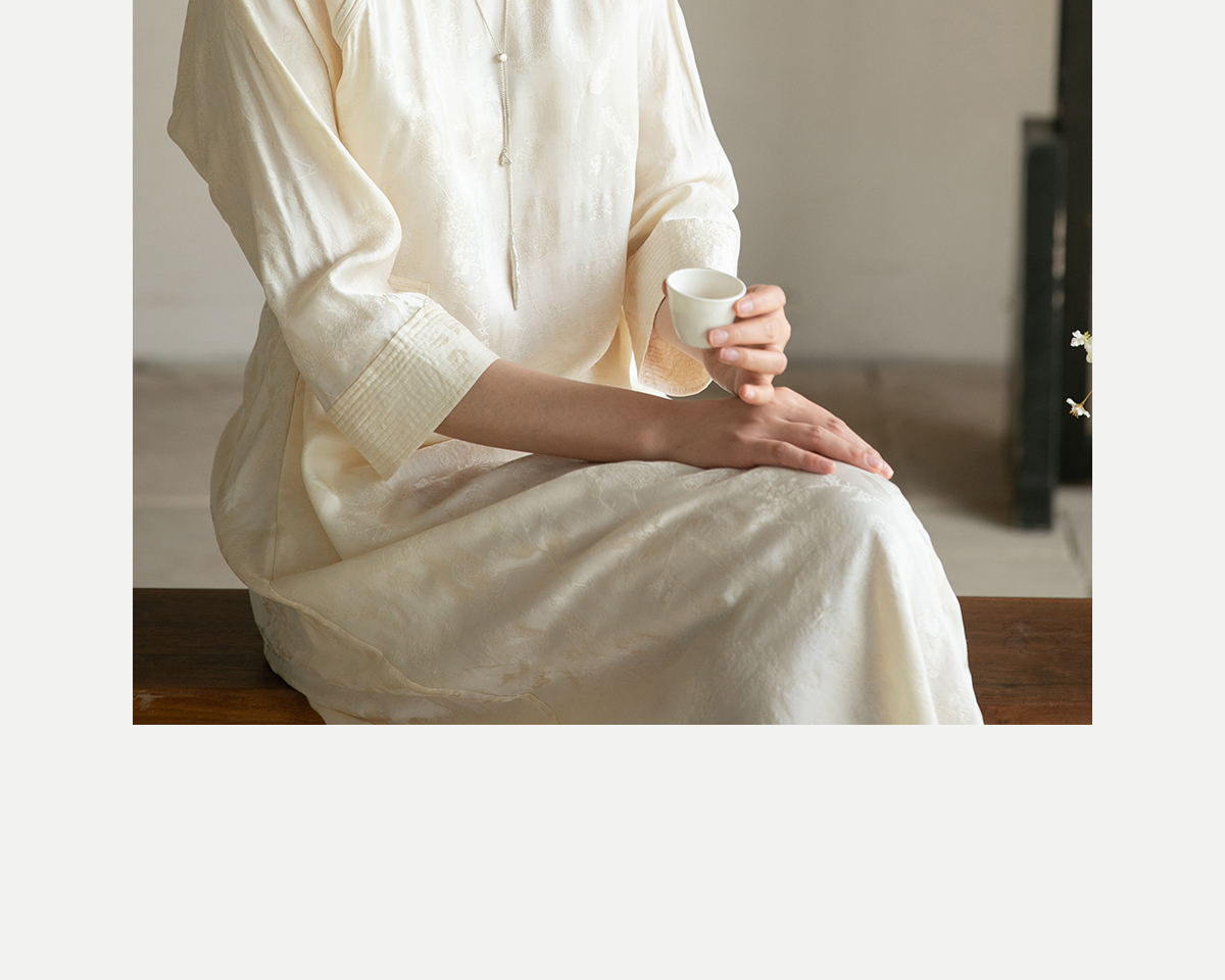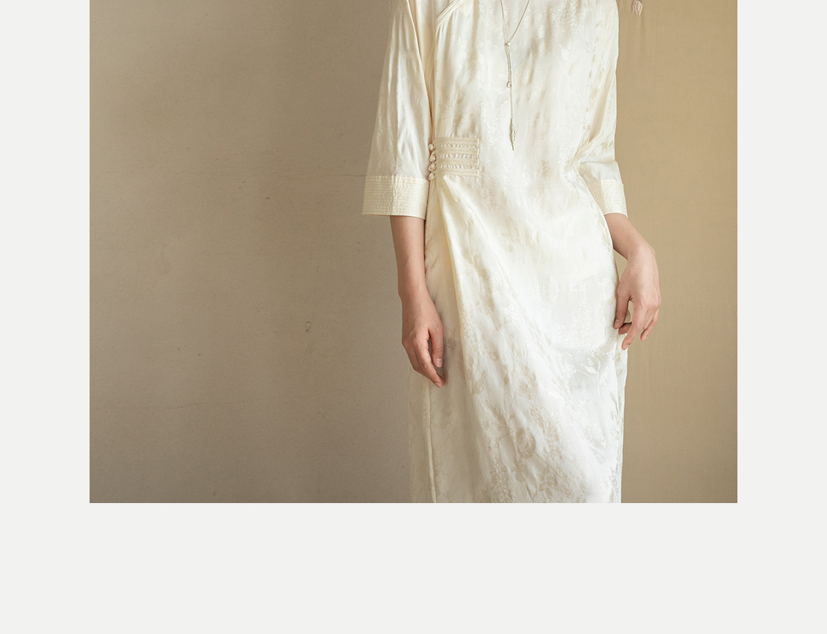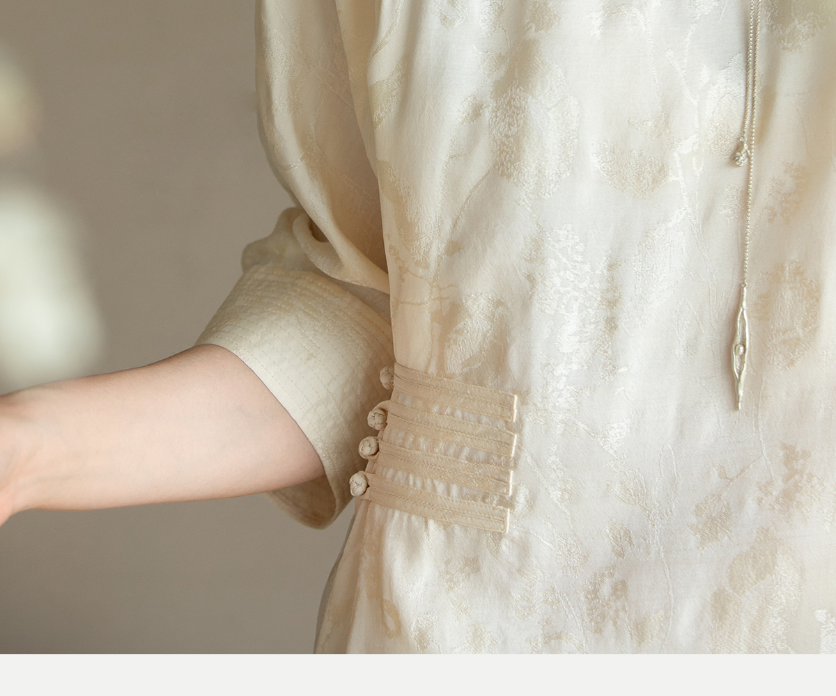 牧衣游原创 柞蚕丝混纺提花连衣裙女夏禅意古朴宽松气质长裙 溪外