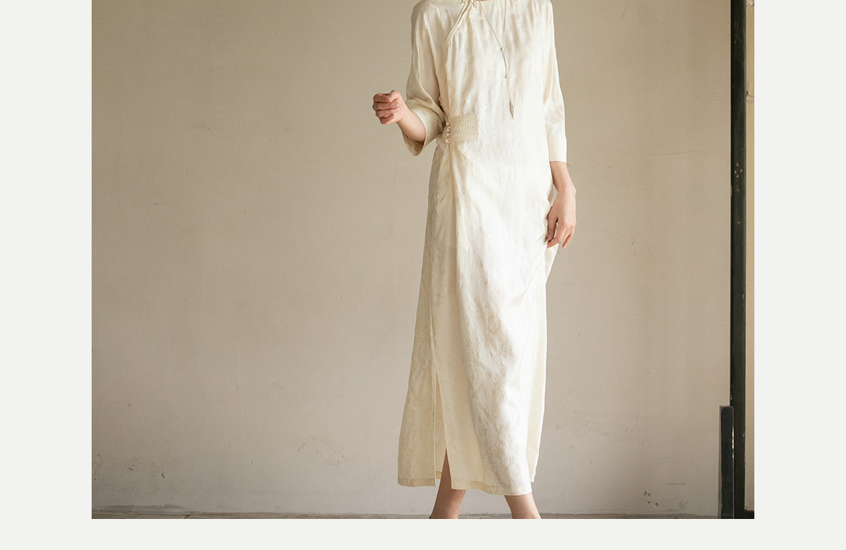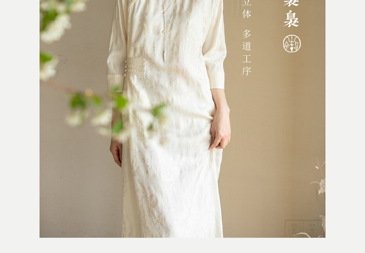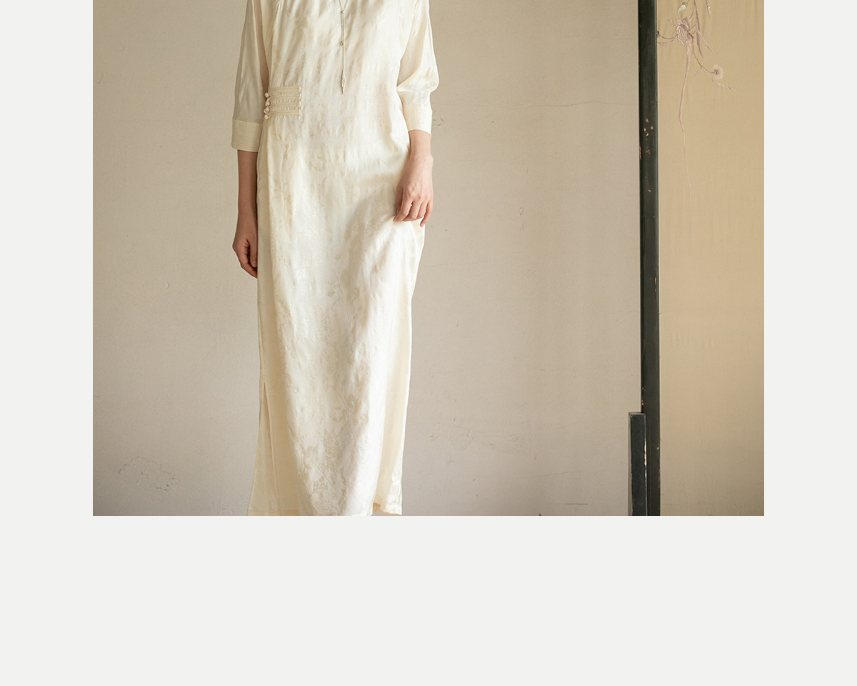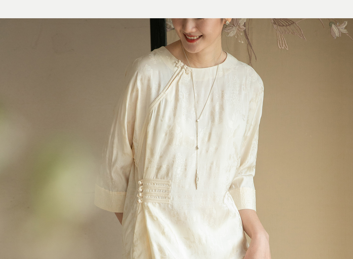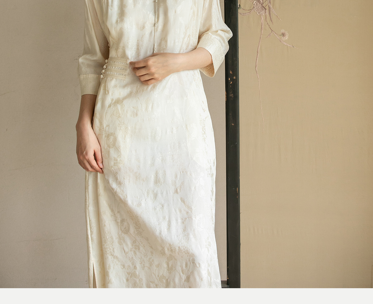牧衣游原创 柞蚕丝混纺提花连衣裙女夏禅意古朴宽松气质长裙 溪外