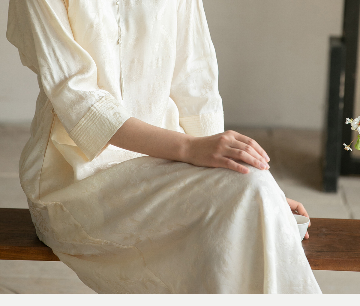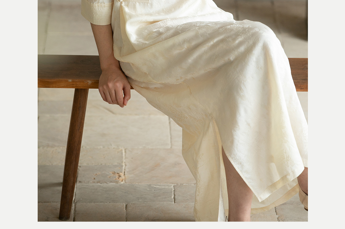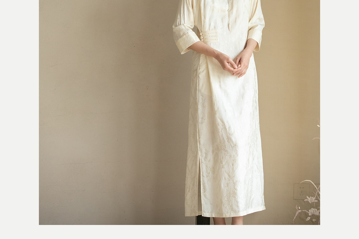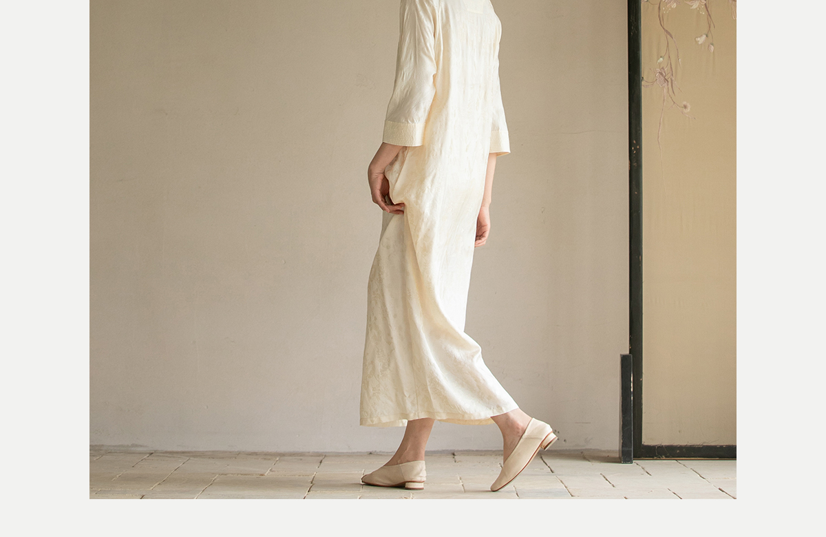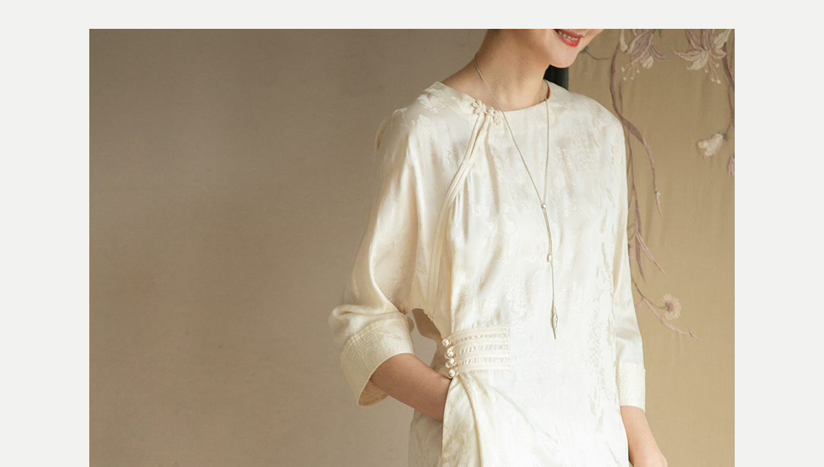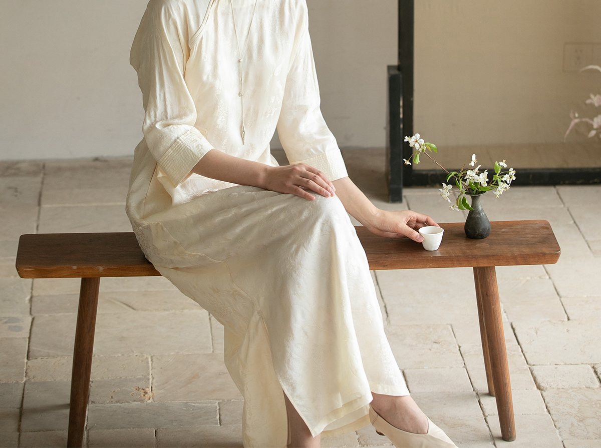 牧衣游原创 柞蚕丝混纺提花连衣裙女夏禅意古朴宽松气质长裙 溪外