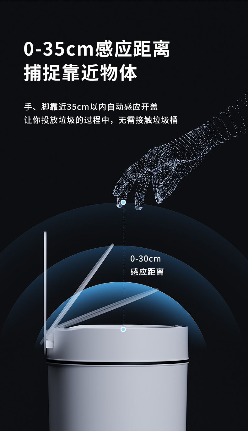 智能垃圾桶家用全自动电动感应式客厅厨房卫生间厕所防水带盖大号(gxfc38)