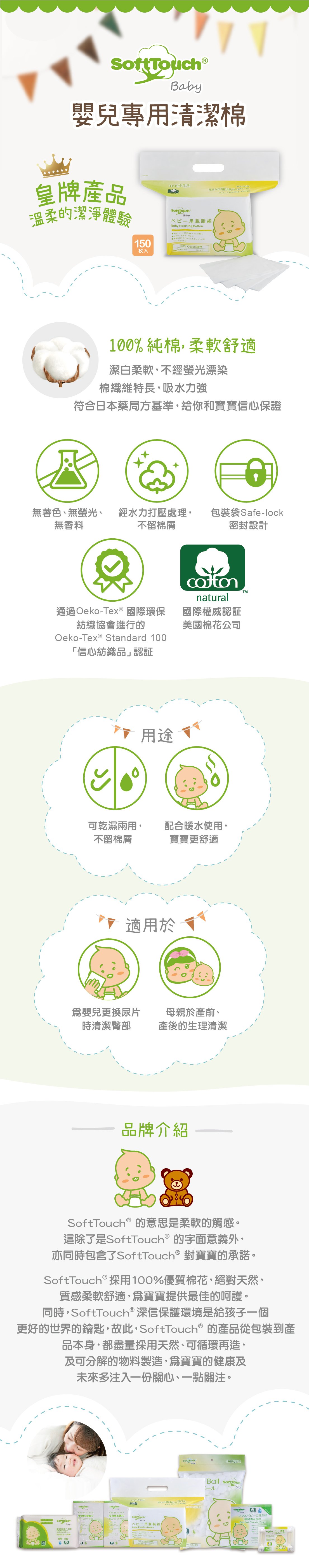 日本Softtouch 婴儿清洁棉柔巾 150片