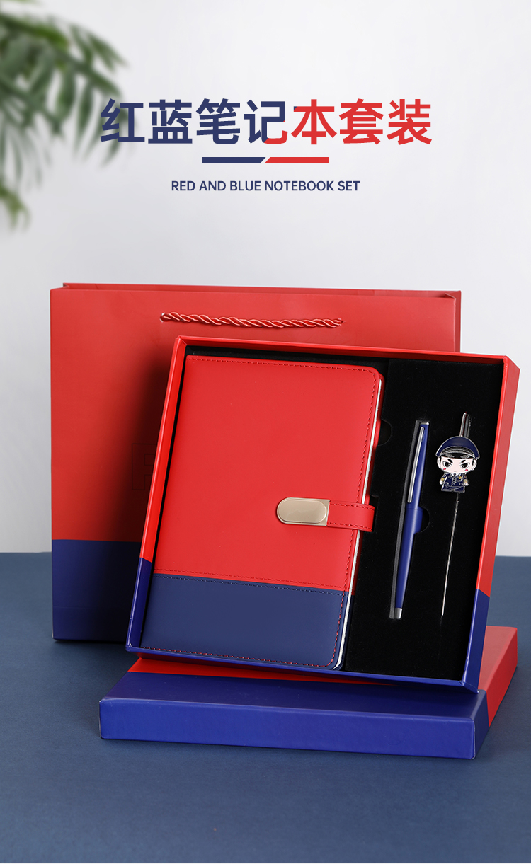 【红蓝笔记本套装】PU封面笔记本办公用日记本套装记事本