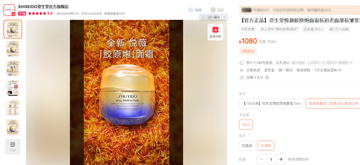 【品名】资生堂悦薇胶原炮面霜50ml 丰润霜PRO滋润紧致抗老