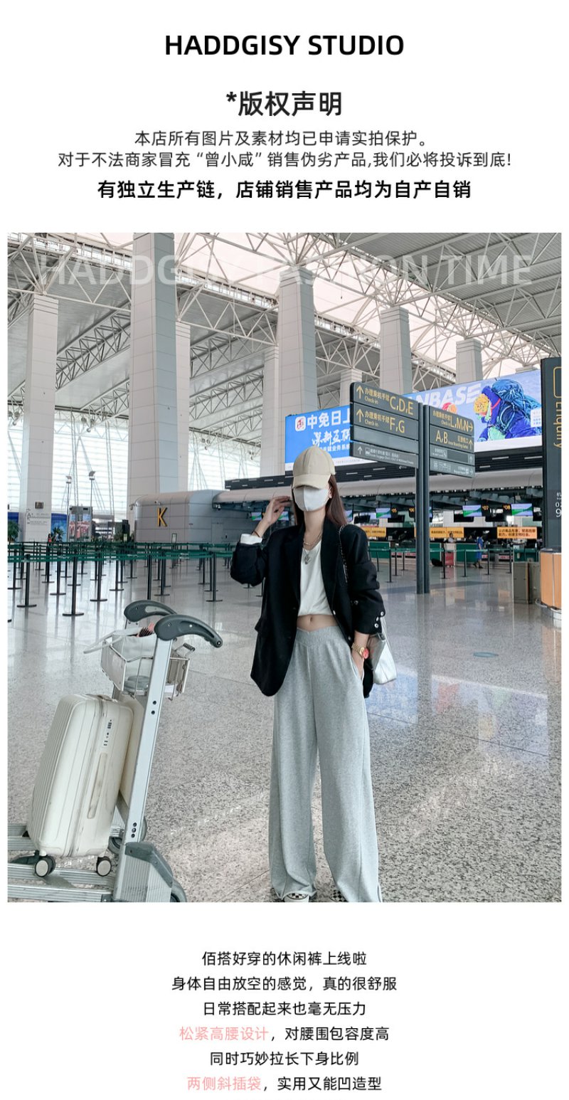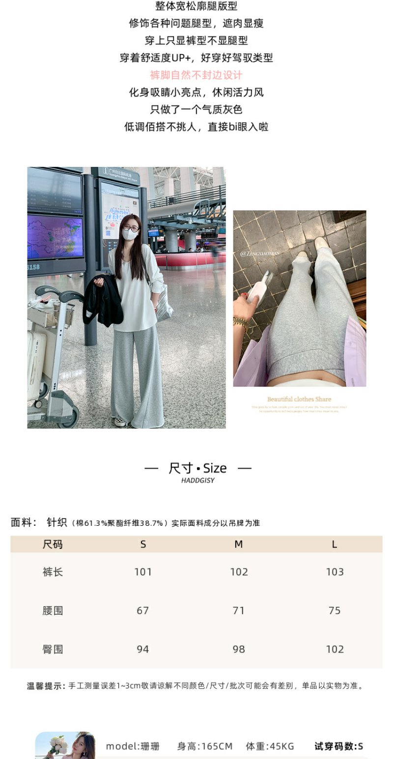 <曾小咸推荐>【长腿范本】灰色阔腿休闲裤