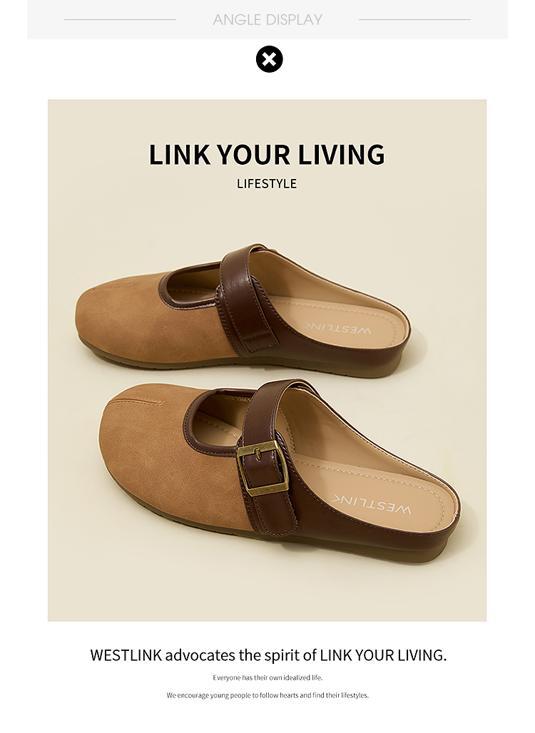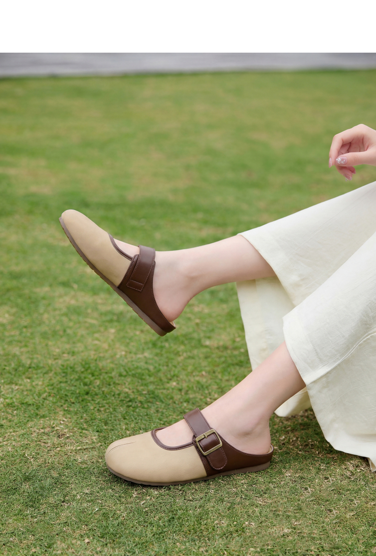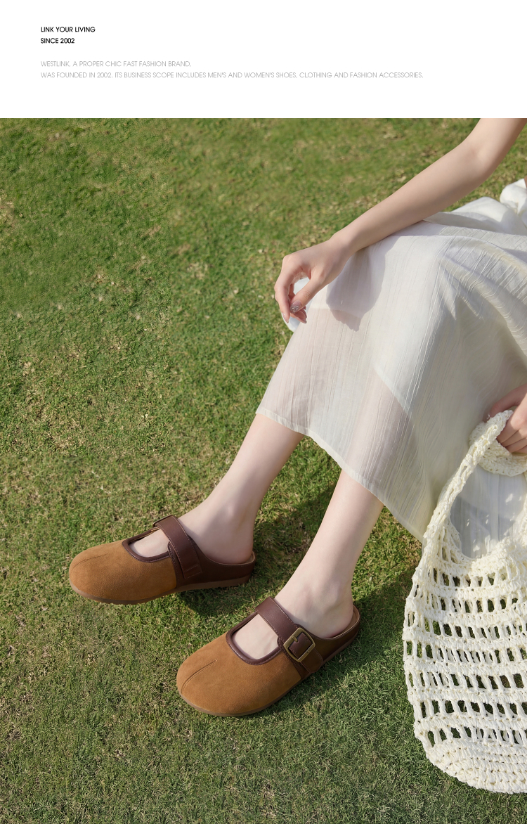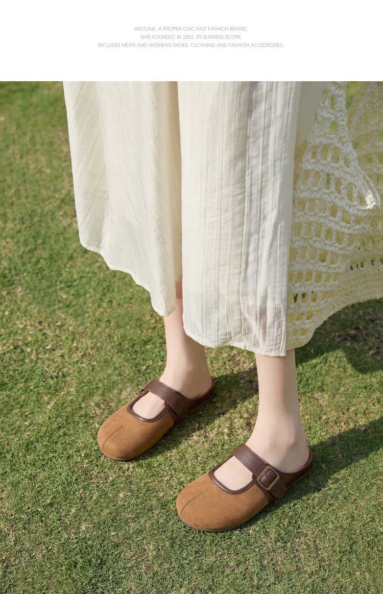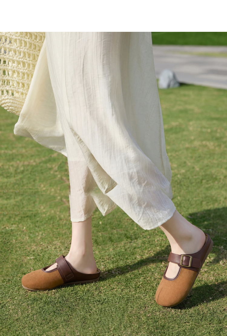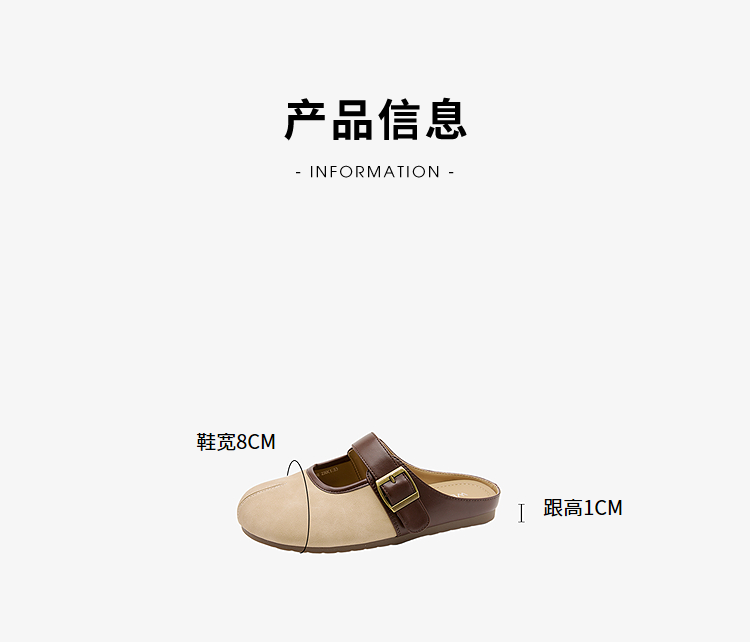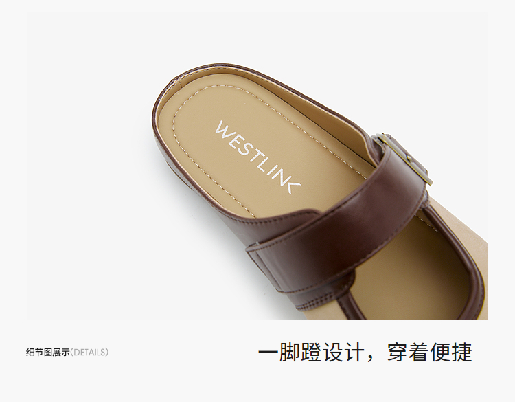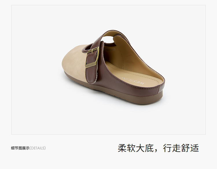 西遇包头拖鞋女2026春季新款平底马蹄鞋外穿懒人半拖增高勃肯鞋子V0566338