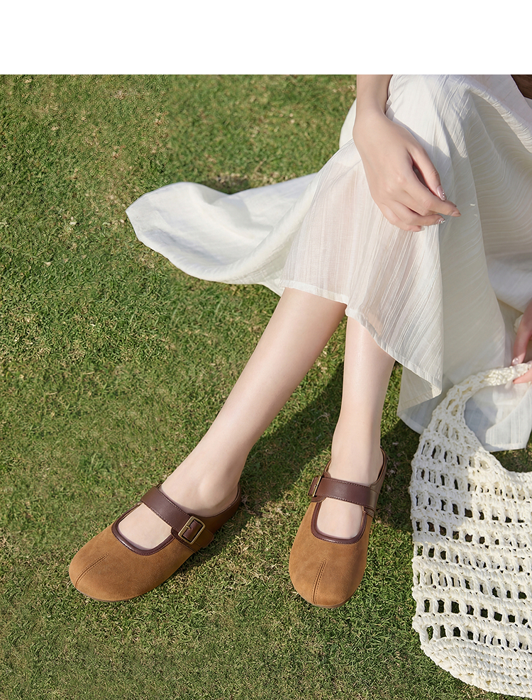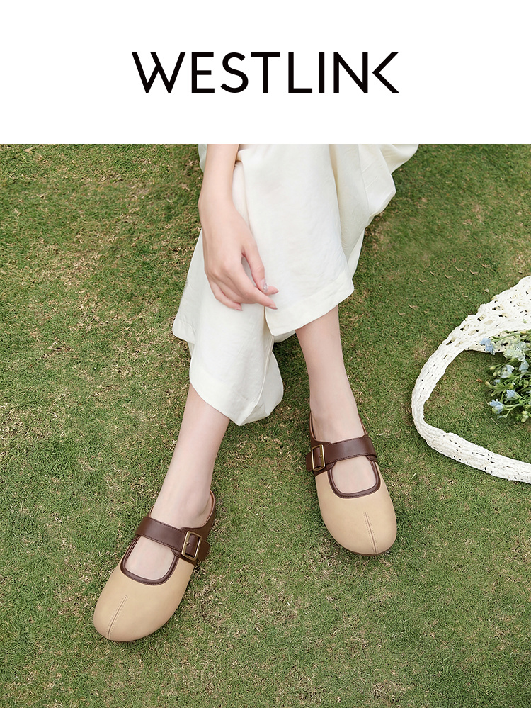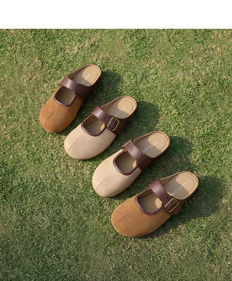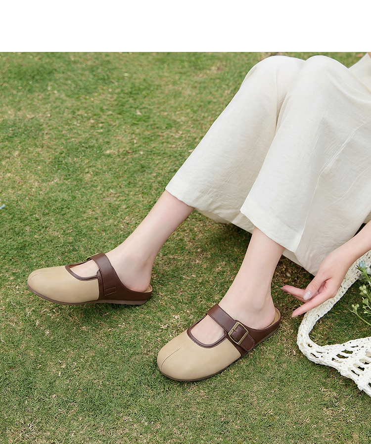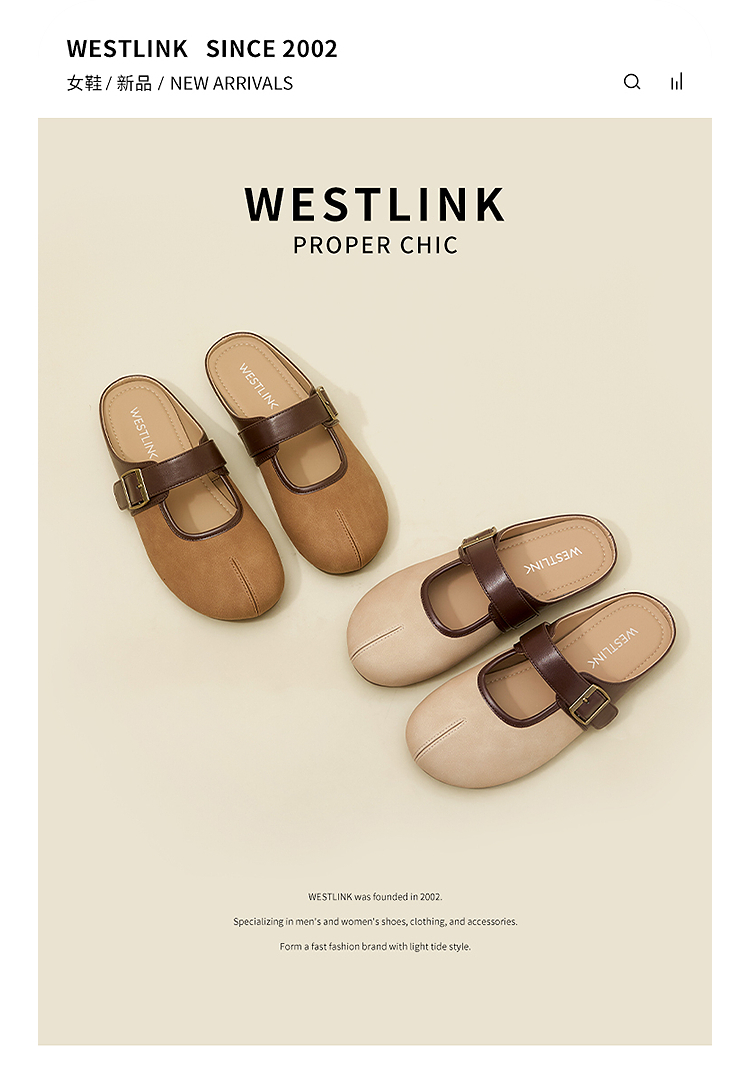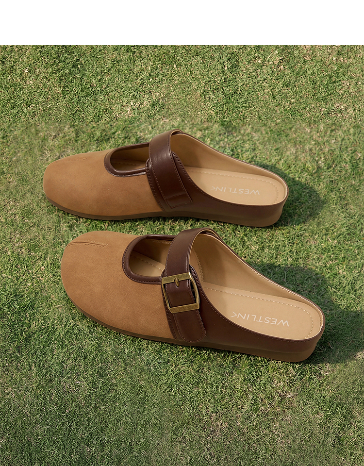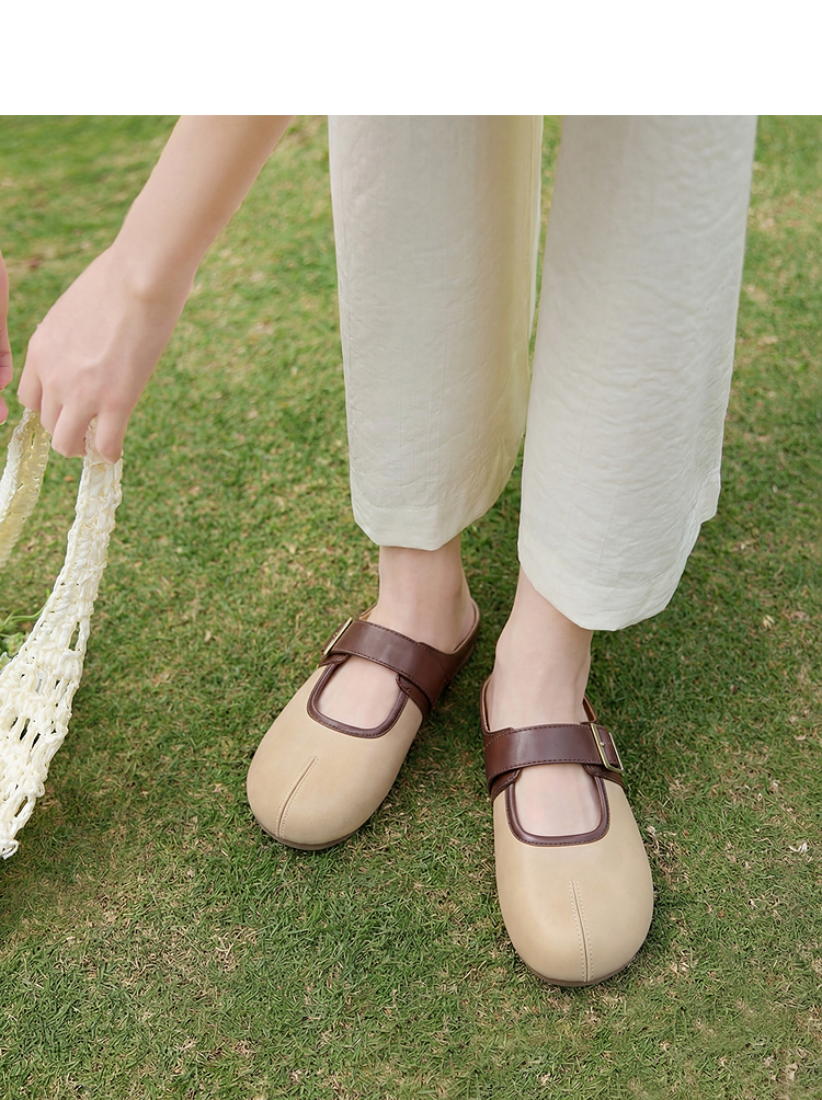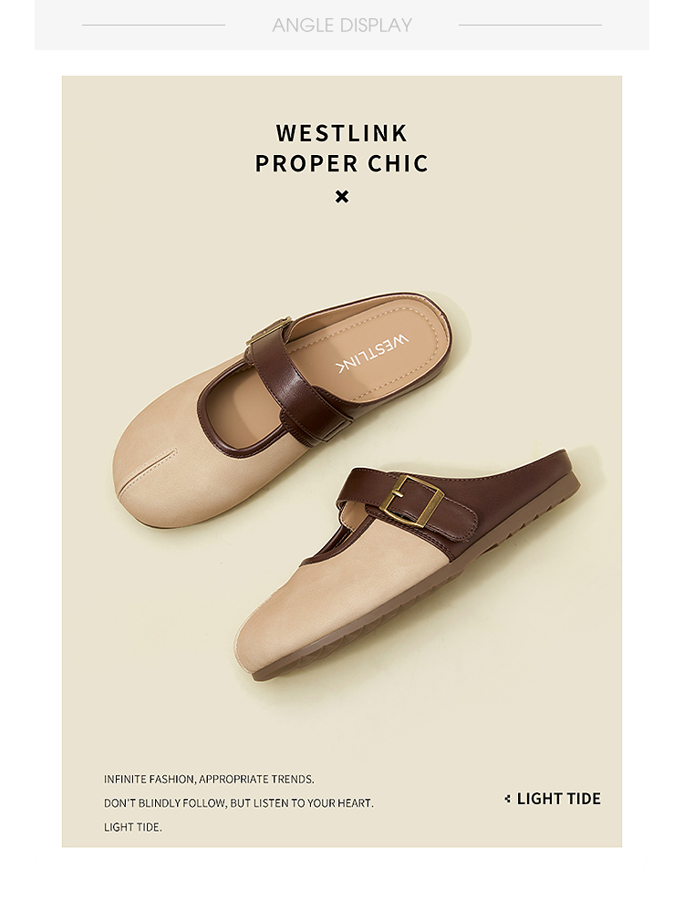 西遇包头拖鞋女2026春季新款平底马蹄鞋外穿懒人半拖增高勃肯鞋子V0566338
