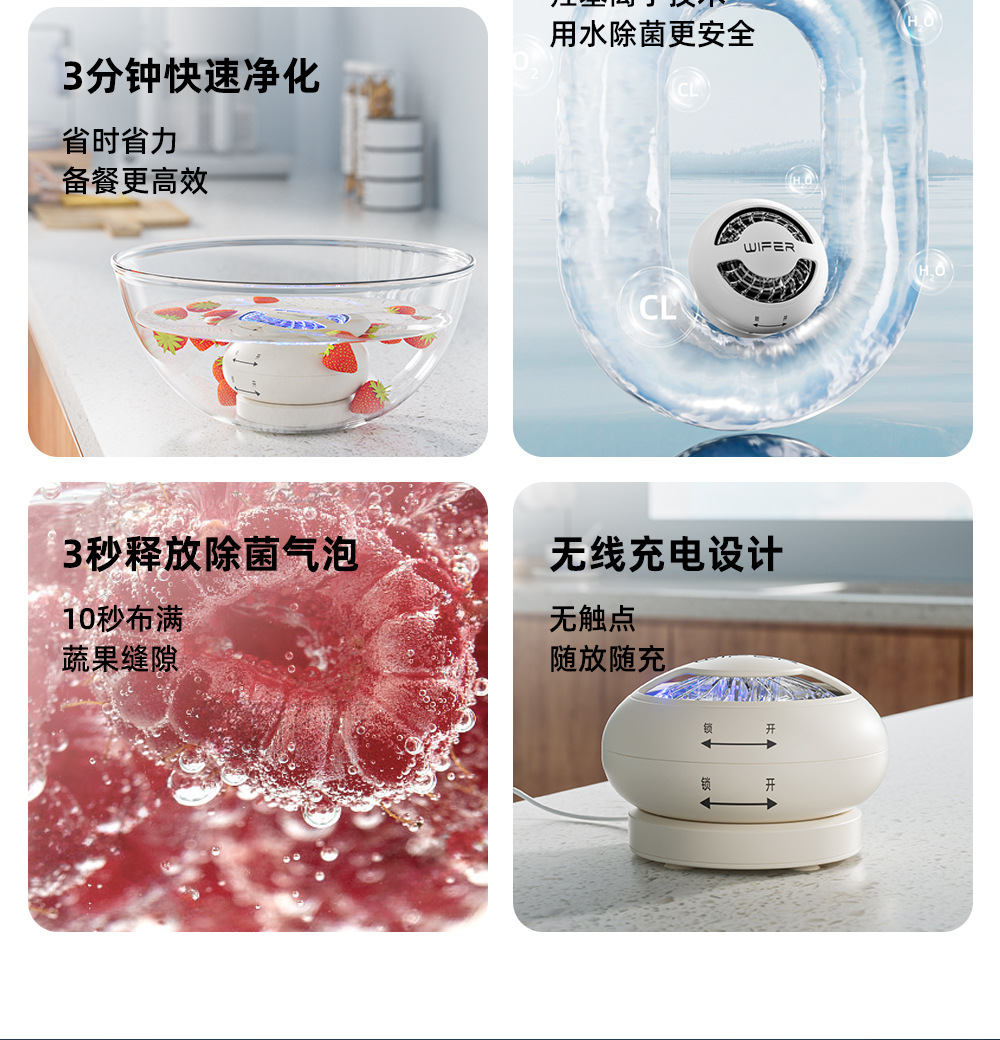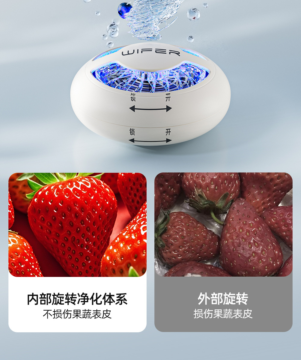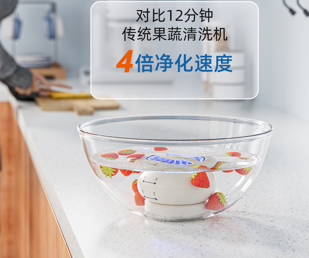 【3分钟吃得更安心🍎】全自动旋转果蔬净化器 ,清洗水果肉类多功能无线消毒洗菜机,全自动果蔬净化器🔥农残细菌无处藏,肉类海鲜也能轻松消毒!0耗材0污染,厨房必备神器💡