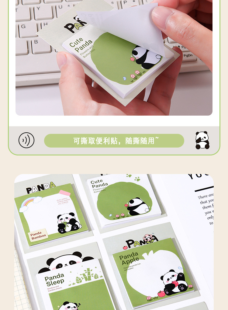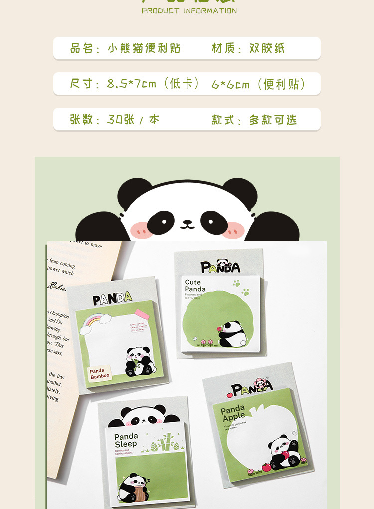 「19.9到手15本」熊猫文创便利贴 居家日用卡通可爱学生用记事留言小条高颜值可粘贴便签本子