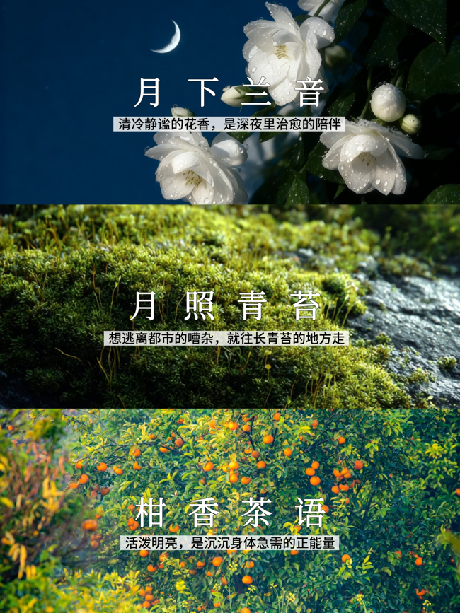 每个香薰器内附3个不同香型的香片: