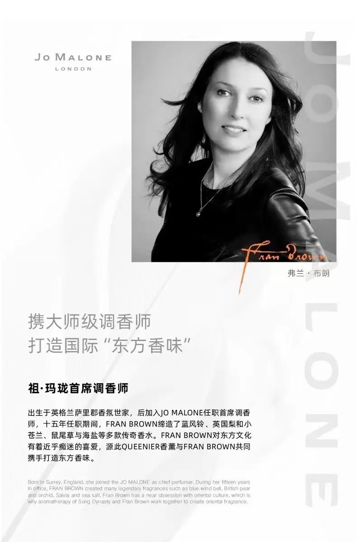 值得一提的是,祖玛珑蓝风铃、英国梨、小苍兰、鼠尾草与海盐等多款炙手可热的传奇香水,都是出自弗兰布朗女士之手。