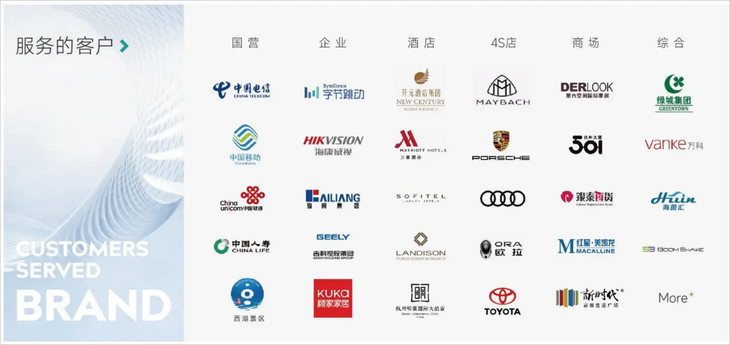 它还为万豪酒店、开元酒店、迈巴赫、奥迪等多个知名国内外企业提供空间香氛服务。