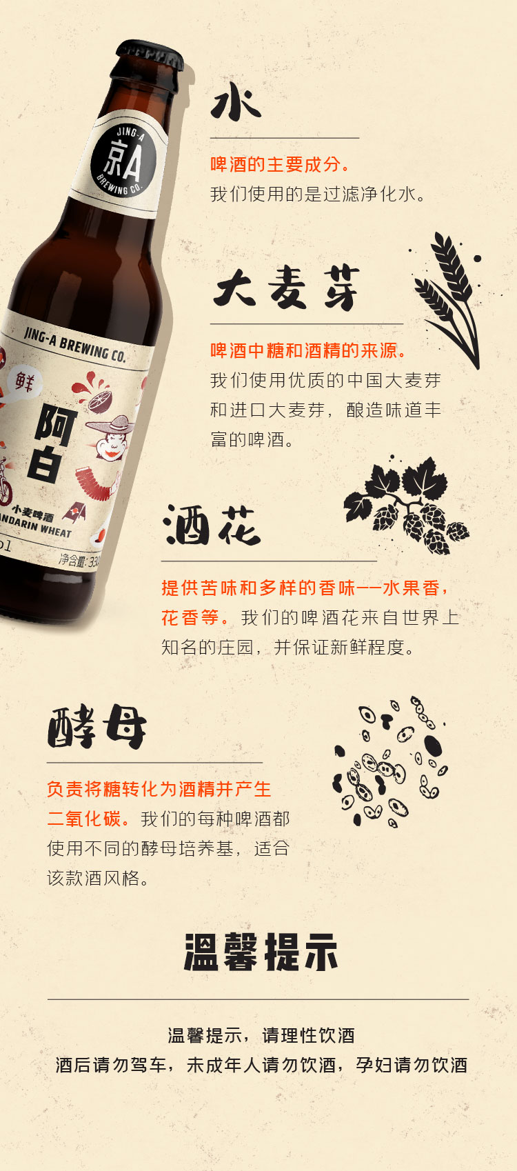 京A阿白小麦啤酒330ml*6瓶装 比利时风味 国产精酿啤酒 箱装正品