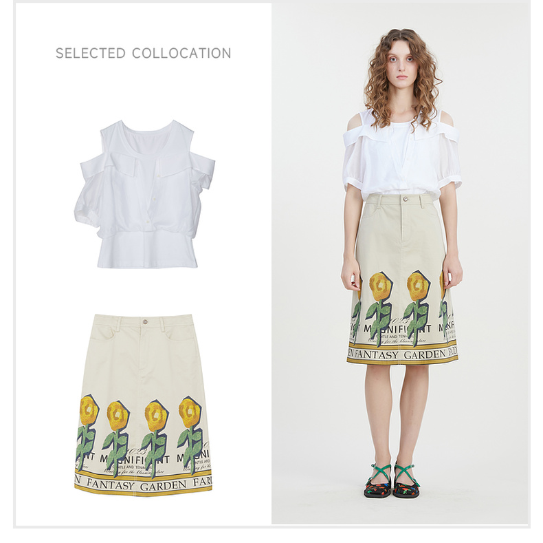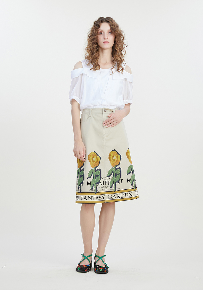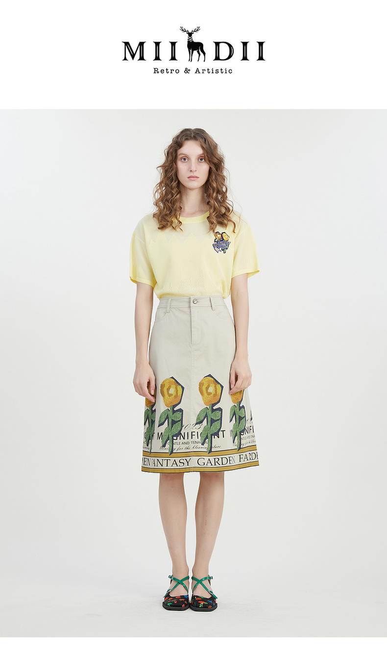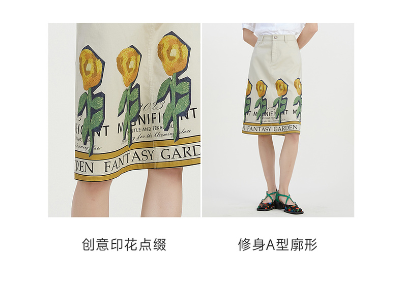 谜底A字型半身裙女2023夏季新款复古特色印花中长款半裙232MB0704