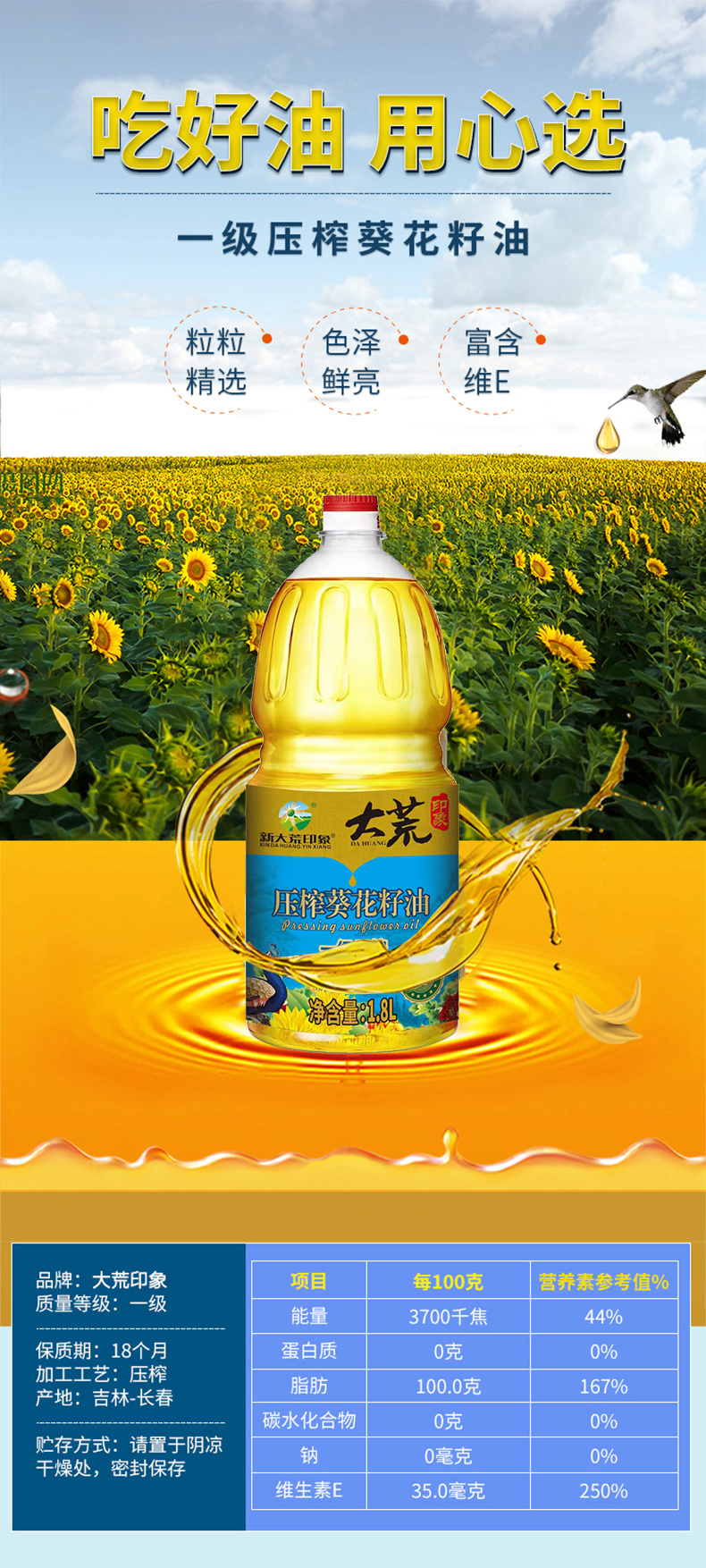 大荒印象一级压榨葵花籽油1.8L