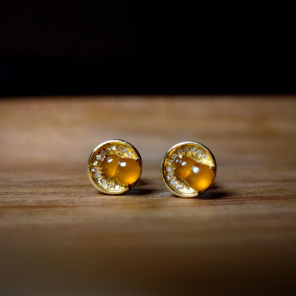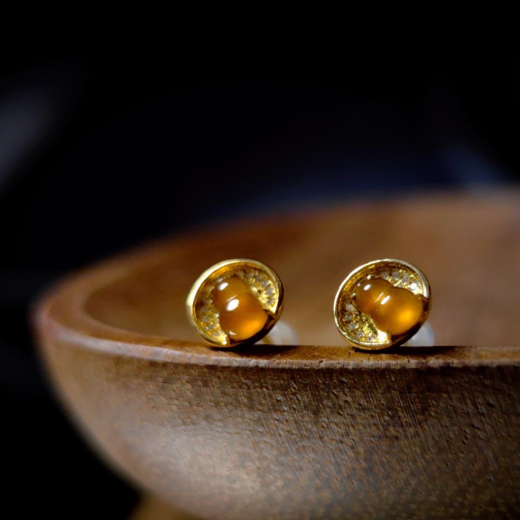 商品:18k镶嵌冰种黄翡小葫芦耳钉