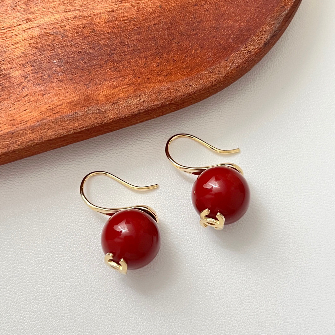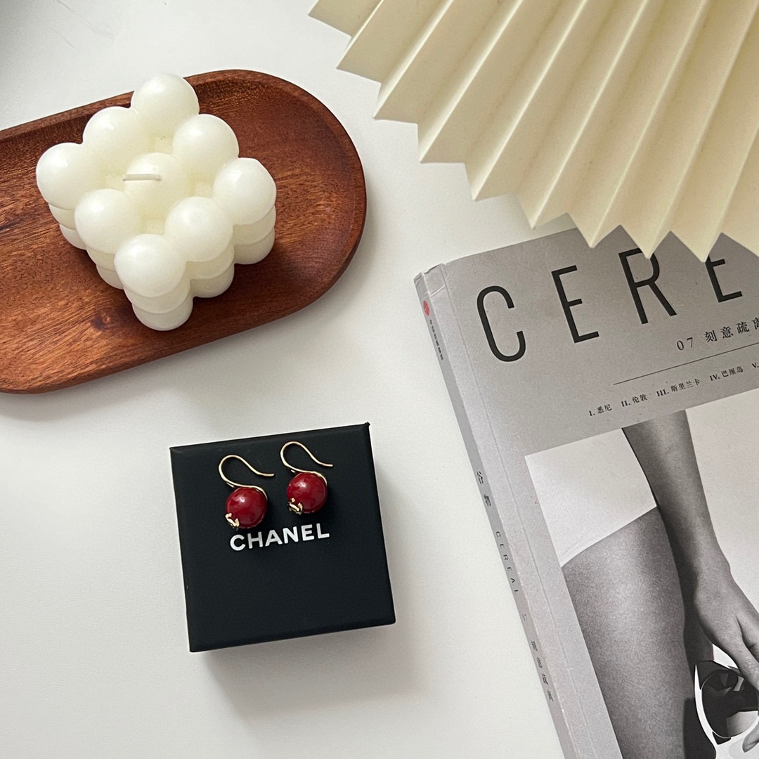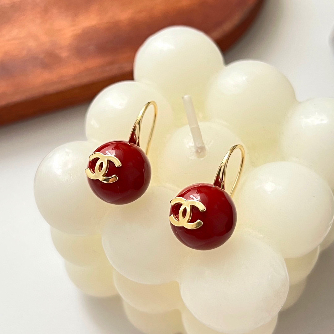 新款☑️CHANEL香奈儿C1双c红色圆形圆珠耳钉耳环