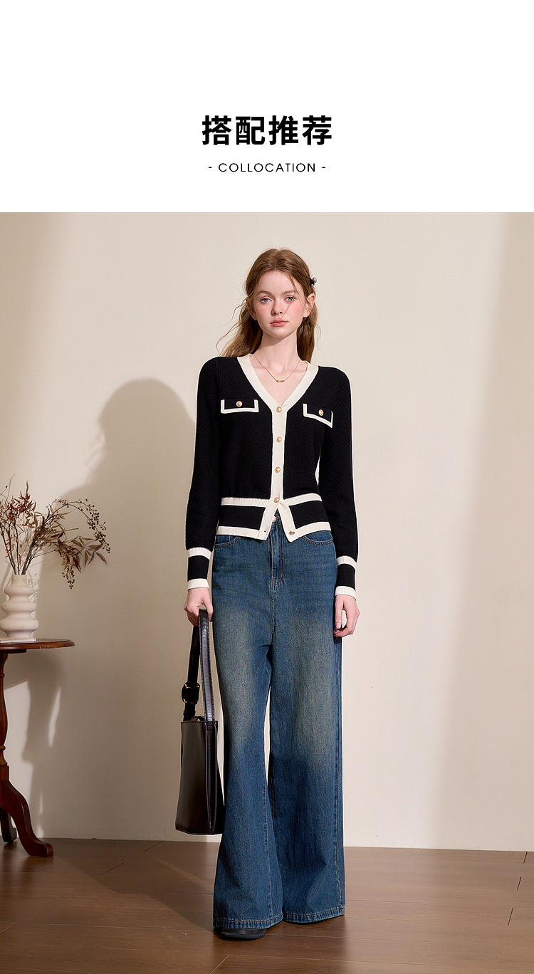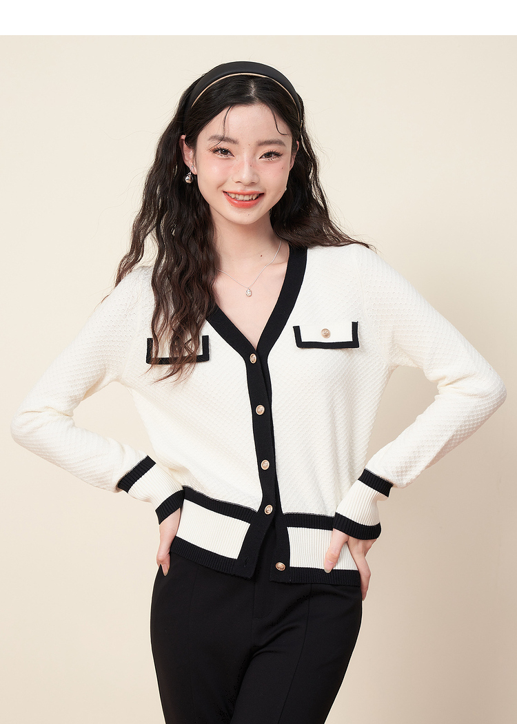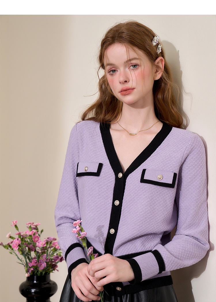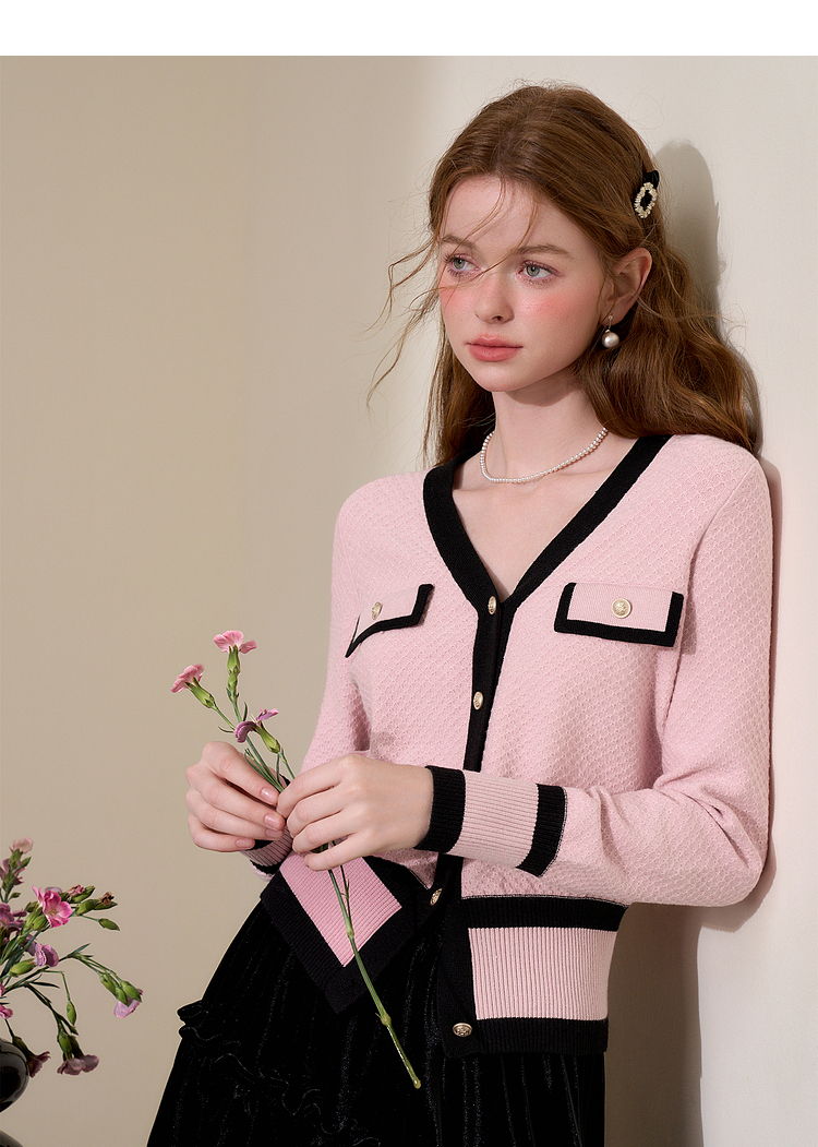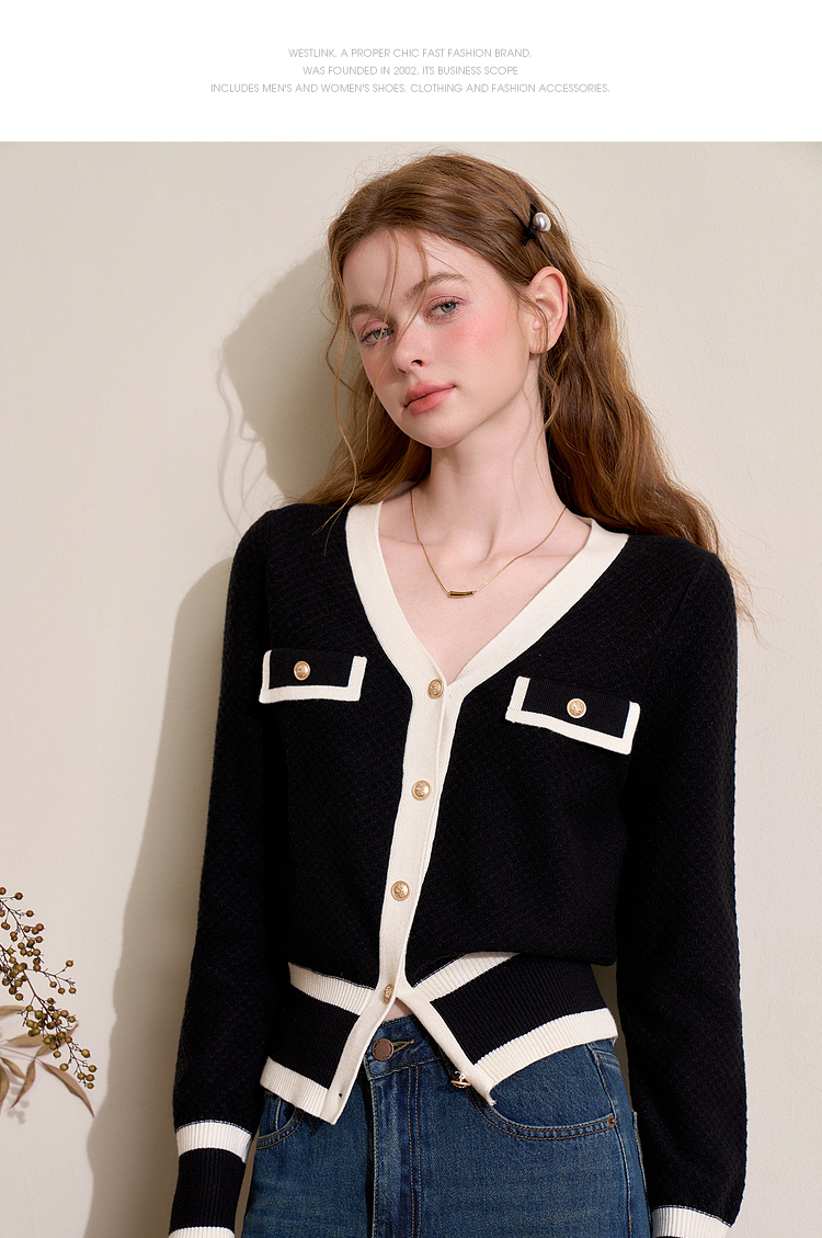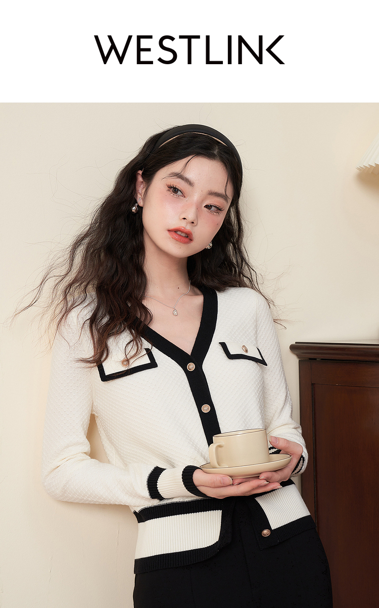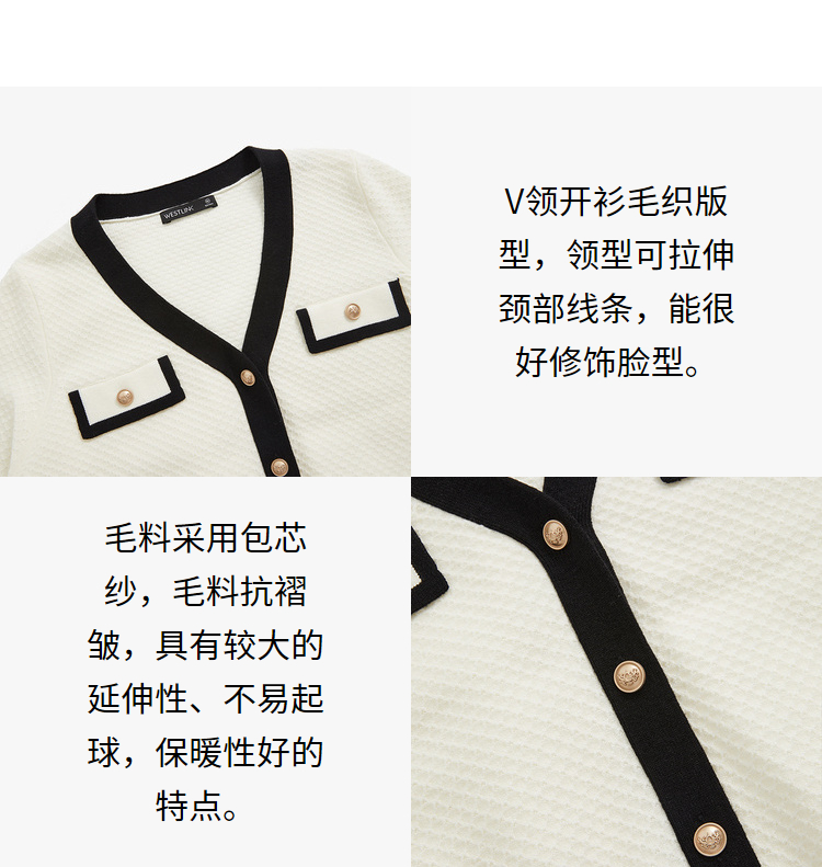 西遇小香风针织外套女新款V领开衫法式针织衫V1721438
