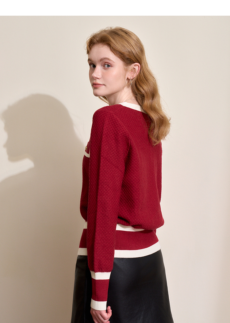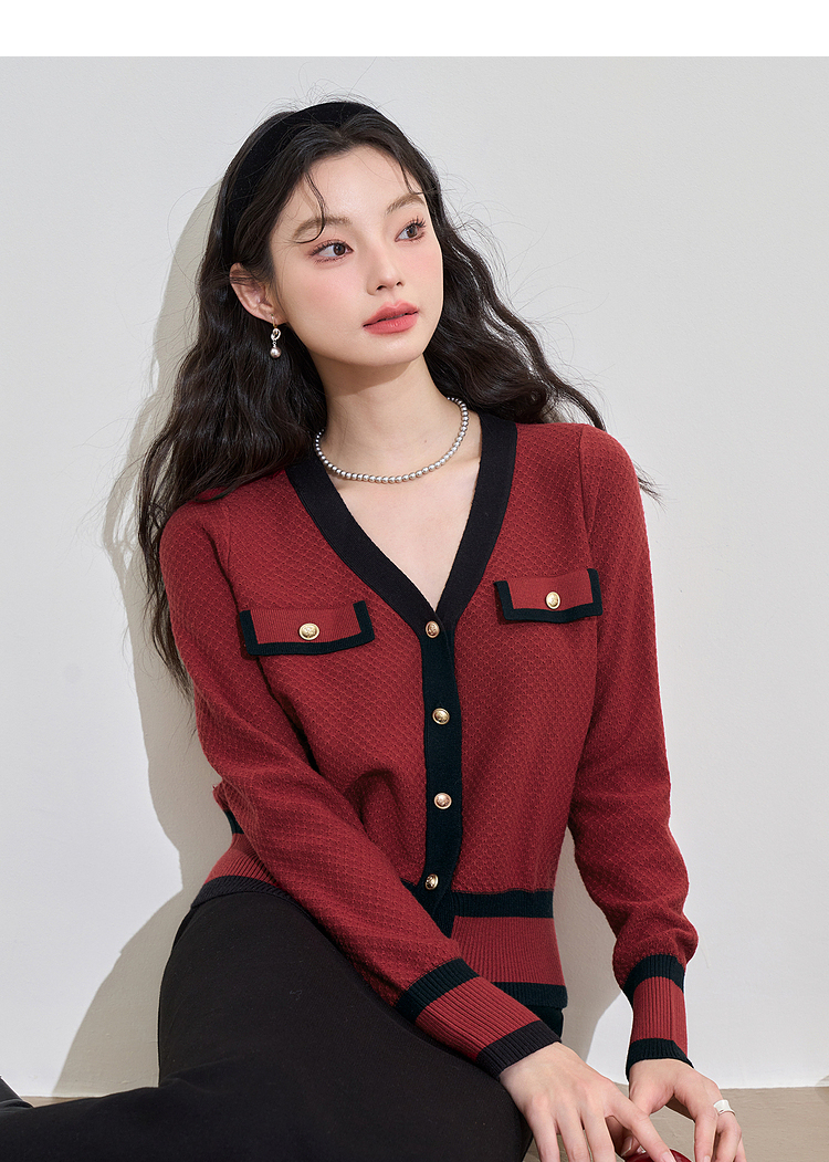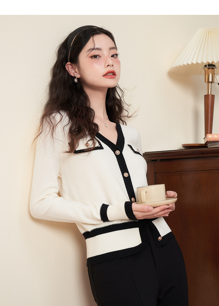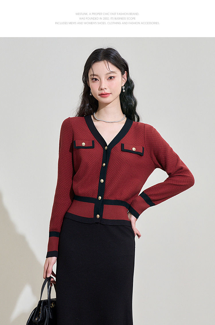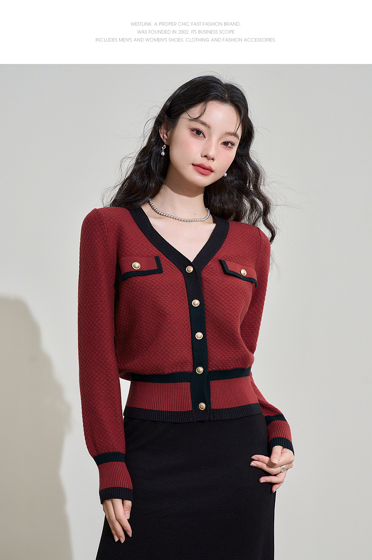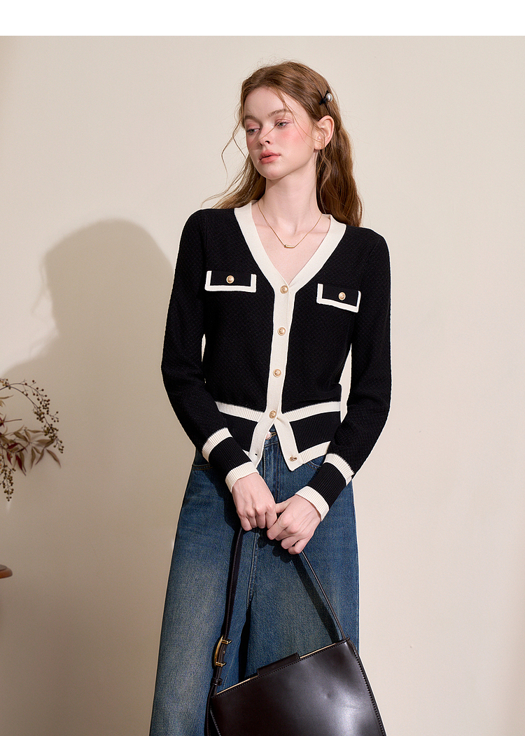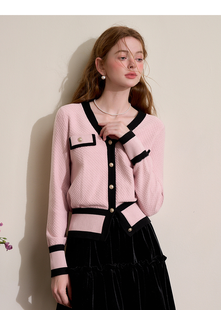 西遇小香风针织外套女新款V领开衫法式针织衫V1721438