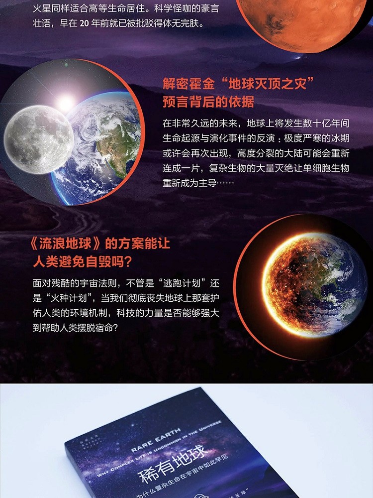 结合新的天文物理学、天体生物学和行星科学知识,古生物学家彼得•D.沃德和天文学家唐纳德•布朗利以极强的洞察力和清晰的条理,对地球上高等生物的出现原因进行了严谨而透彻的分析与推断。