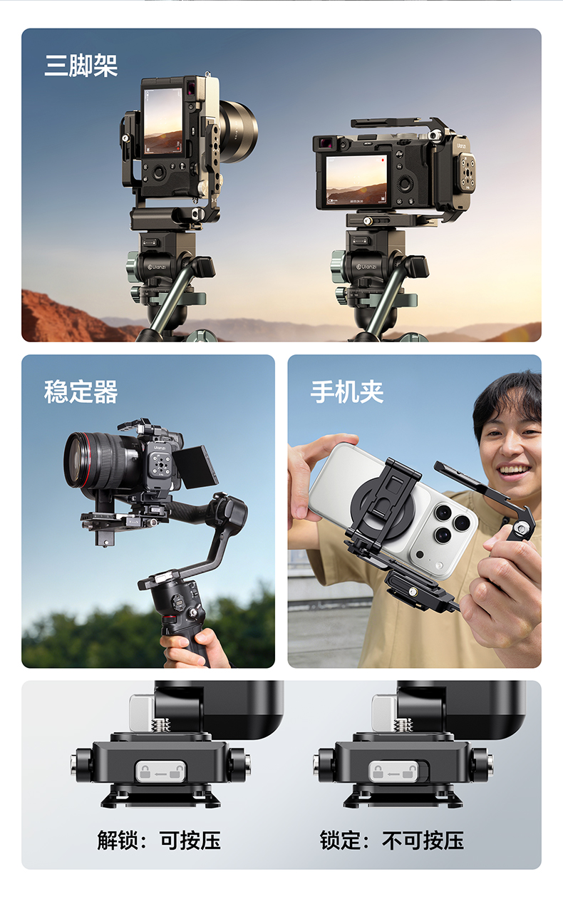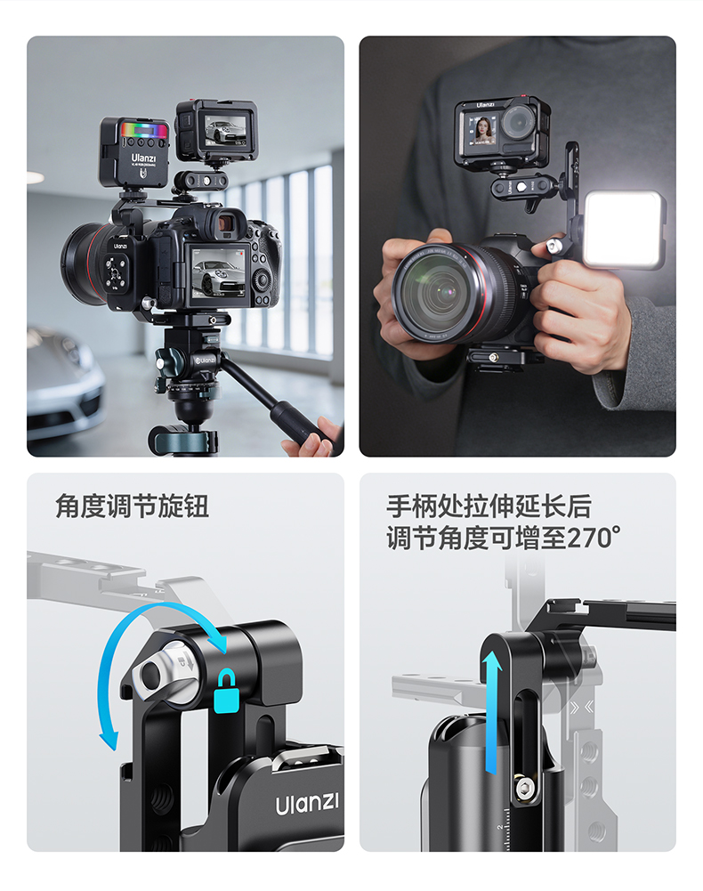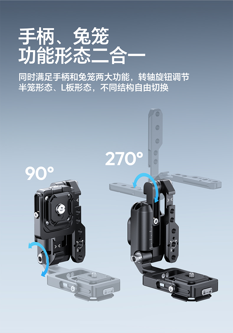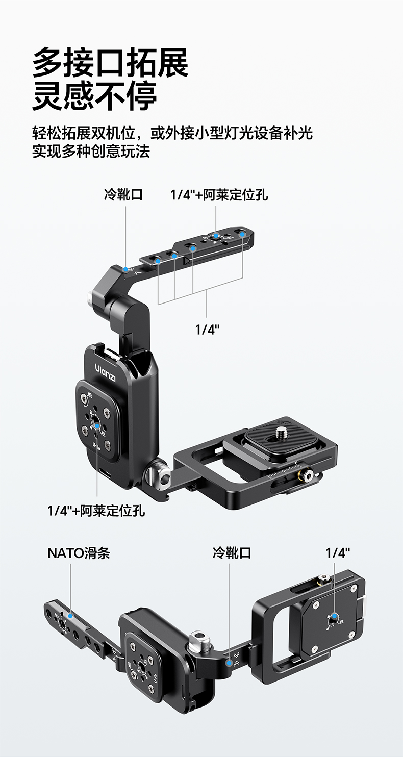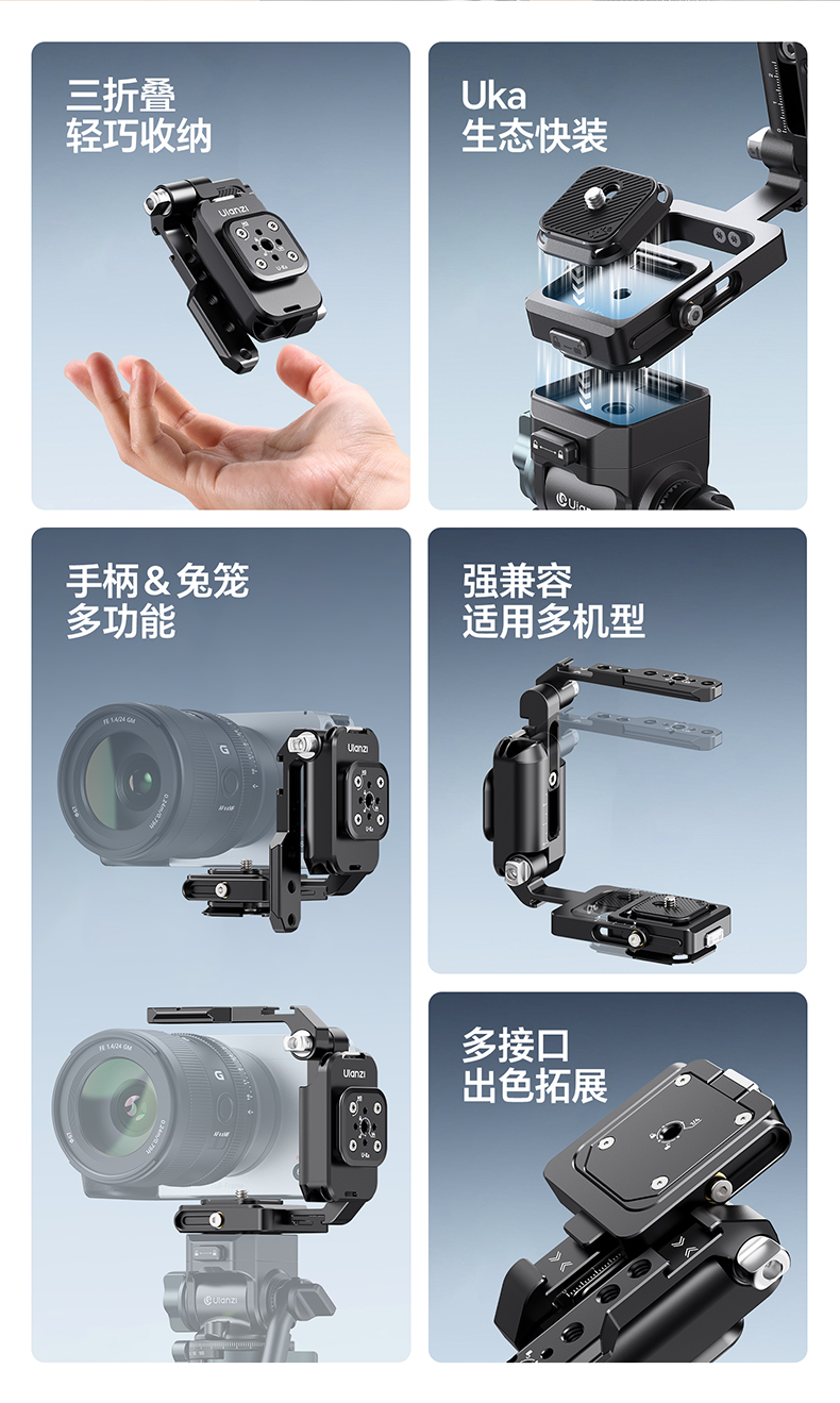 Ulanzi优篮子 Uka相机折叠手柄兔笼多机型适用快装L型板微单反摄影摄像机横竖拍快拆手柄多接口冷靴拓展配件