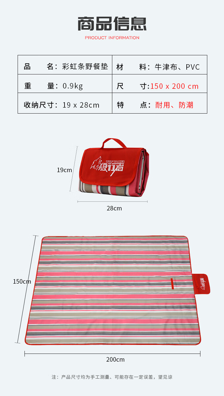 狼行者野餐垫 牛津布户外加厚加宽防潮垫休闲垫子 春游郊游野餐垫