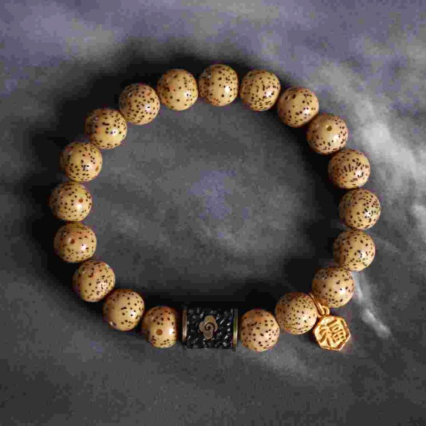 原生态菩提,黑檀镶铜