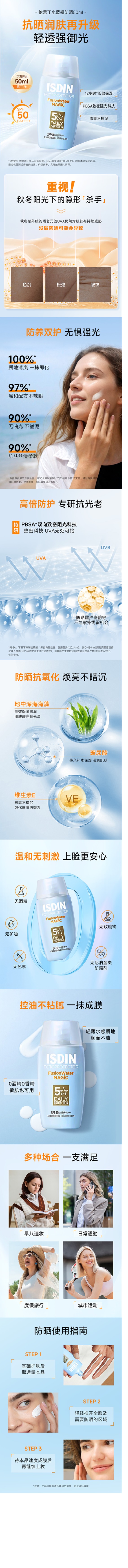 怡思丁ISDIN 敏感肌清爽水感第3代防晒霜50ml SPF50+防晒液