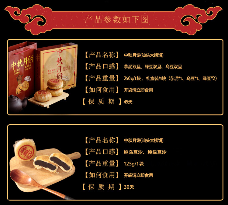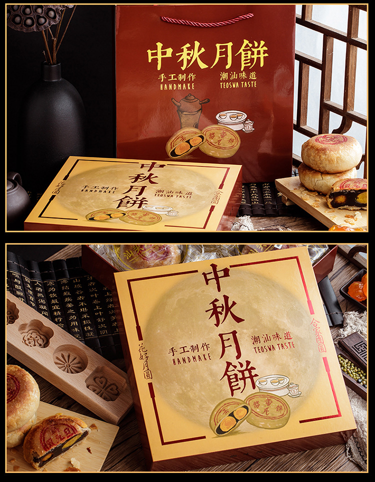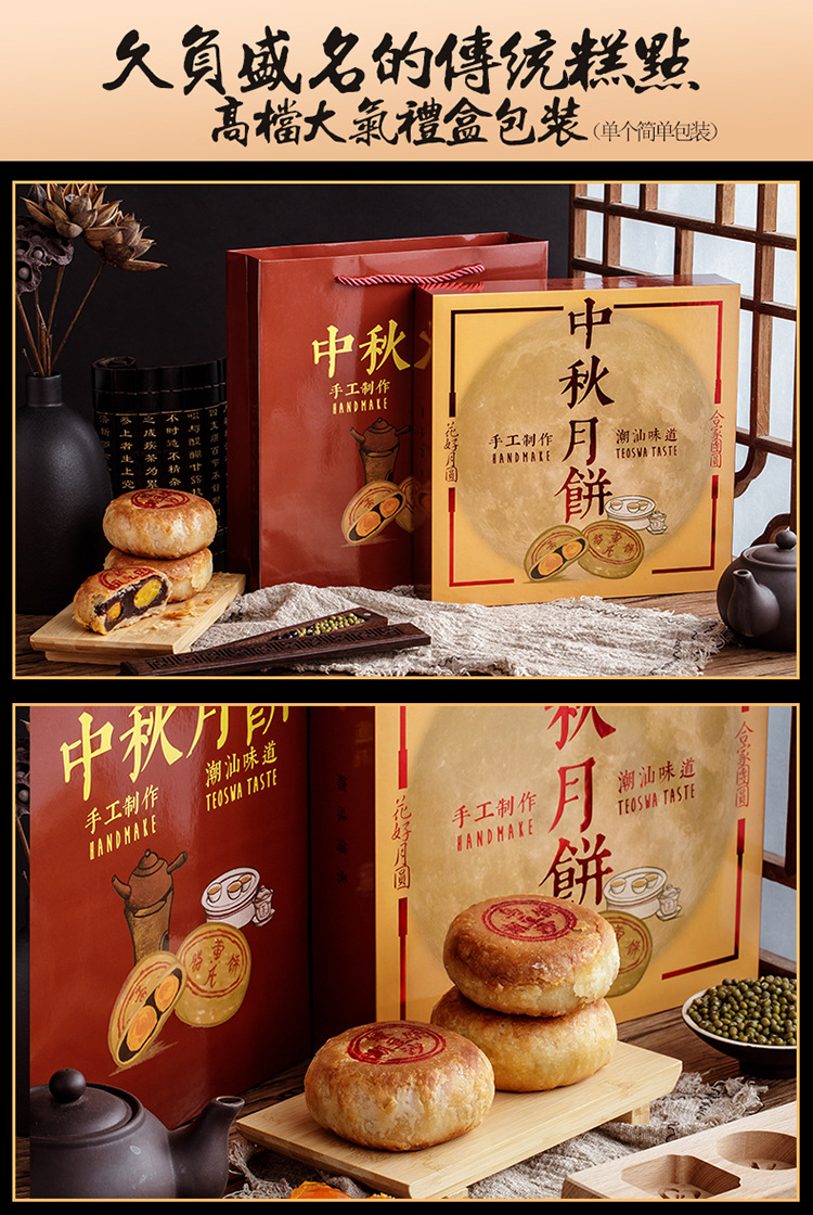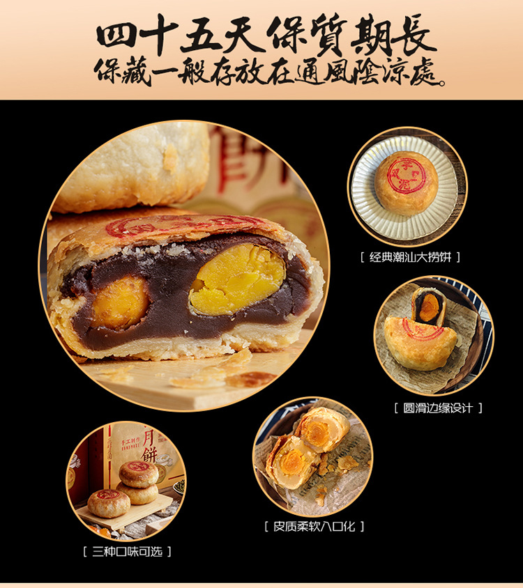 潮式朥饼潮汕手工传统月饼蛋黄酥老式喜饼双蛋黄乌豆沙节日送礼