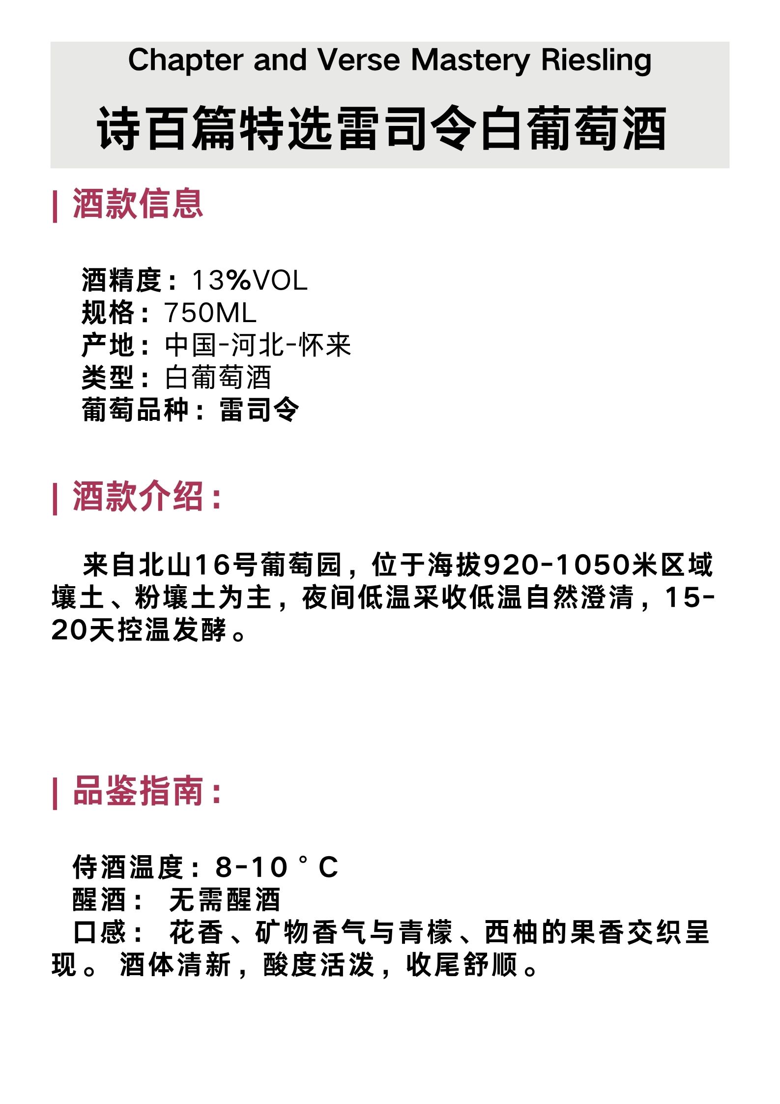 诗百篇特选雷司令白葡萄酒 Chapter and Verse Mastery Riesling