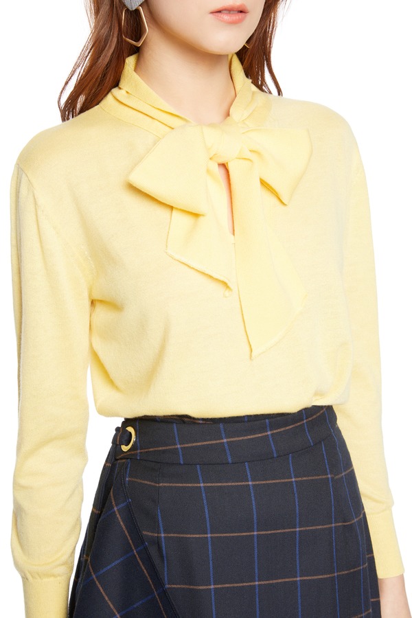 JEMO DRESSING 黄色系带针织上衣 5164