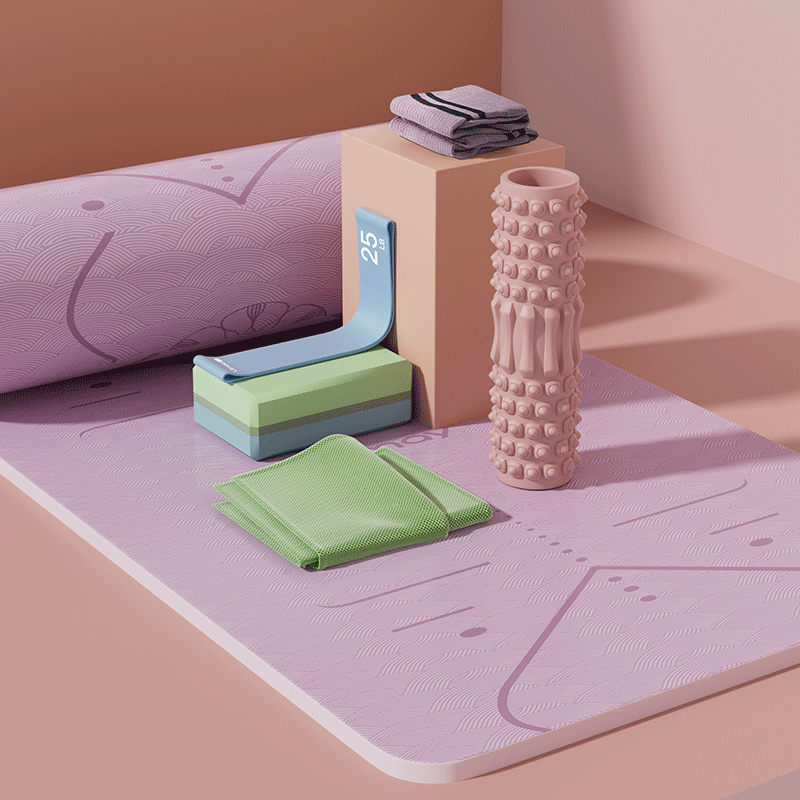 产品组成:瑜伽垫、泡沫轴、毛巾、瑜伽砖、瑜伽袜、弹力带