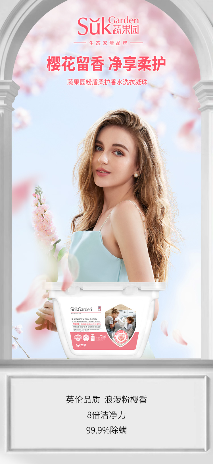 【日化洗护】蔬果园粉盾柔护香水洗衣凝珠-8g QSH