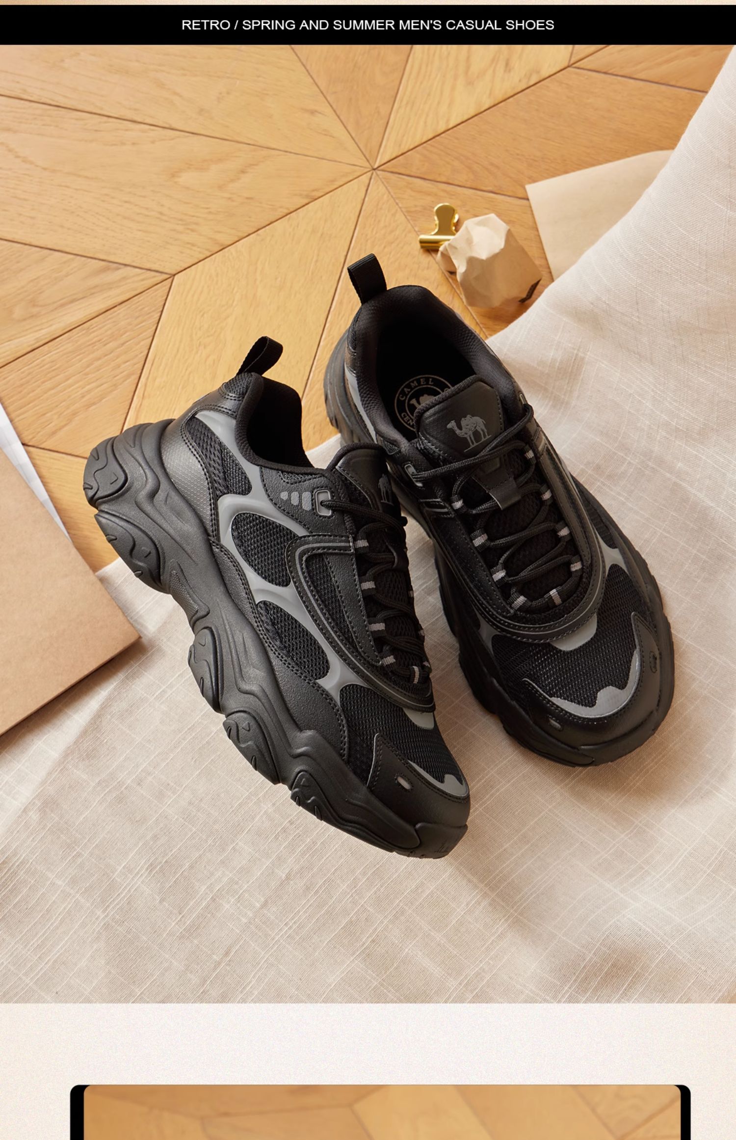 骆驼老爹鞋男2025春季新款复古防滑厚底增高百搭舒适休闲运动鞋 K15B097021_K25B097014